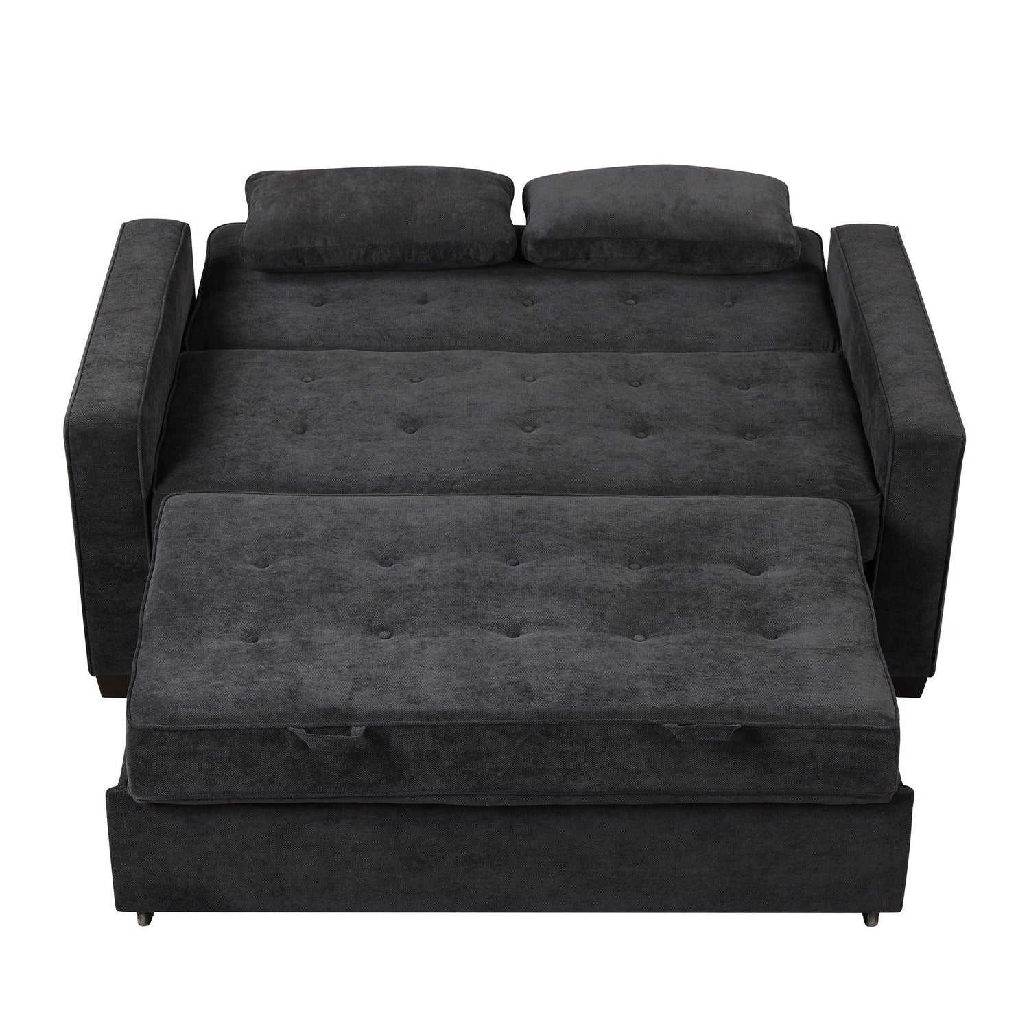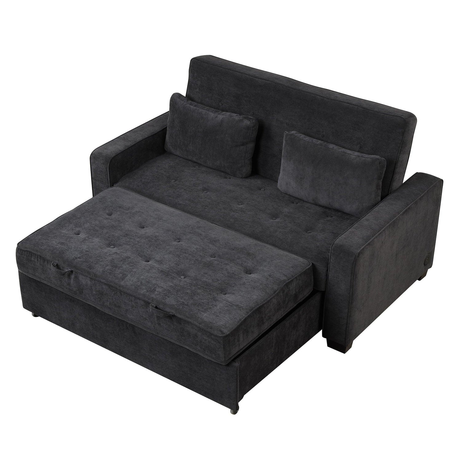 66.5" Upholstered Loveseat With Pull Out Bed, Two Throw Pillows, Dual USB Charging Port and Adjustable Backrest - Black