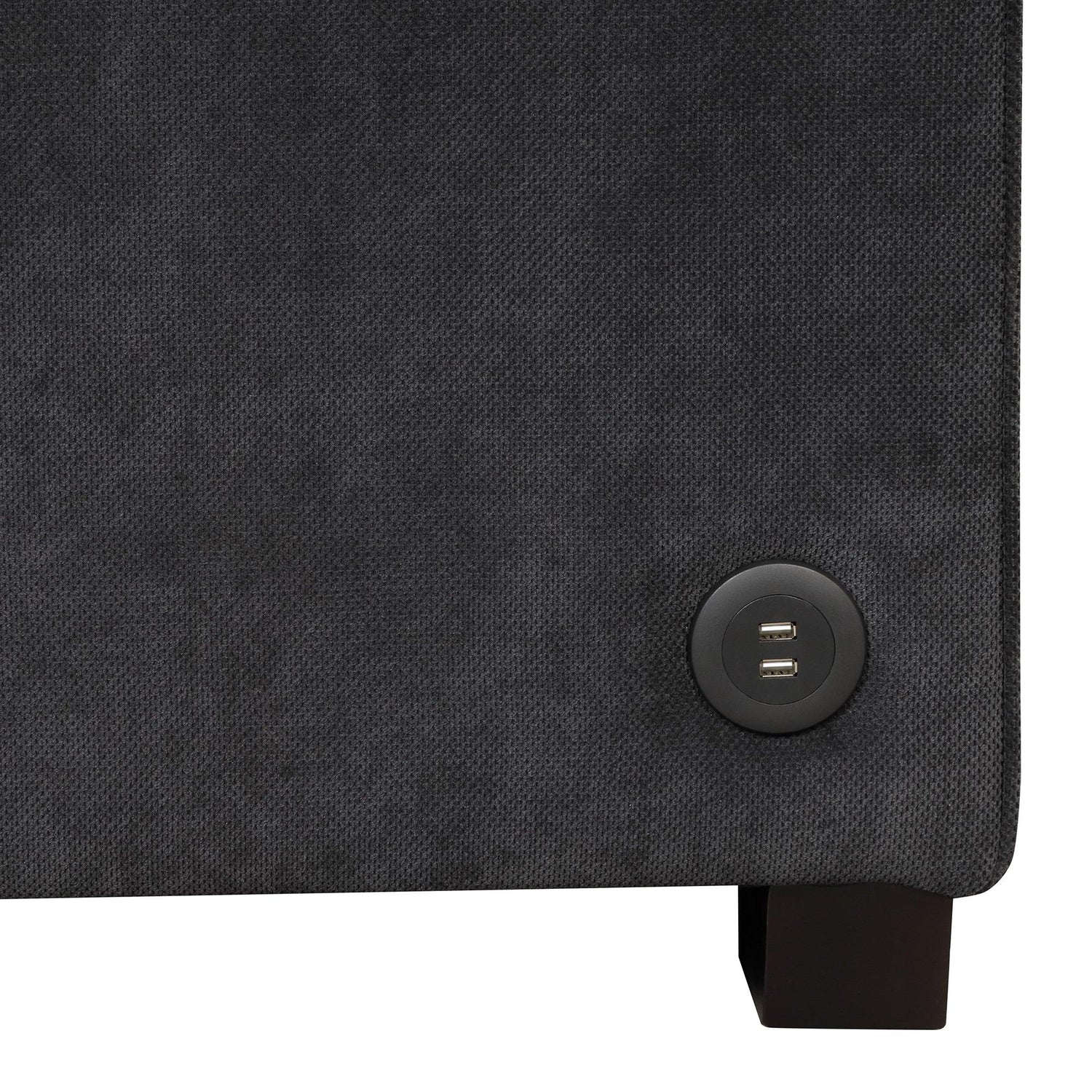 Designed for optimal comfort, the backrest and seat cushions are padded with high-density foam and a spring package, delivering excellent support and a plush seating experience. The adjustable backrest offers three angles—180°, 145°, and 110°—to cater to various needs, from lounging to sleeping. A circular USB charging port on the right armrest adds modern convenience, allowing you to power your devices effortlessly.