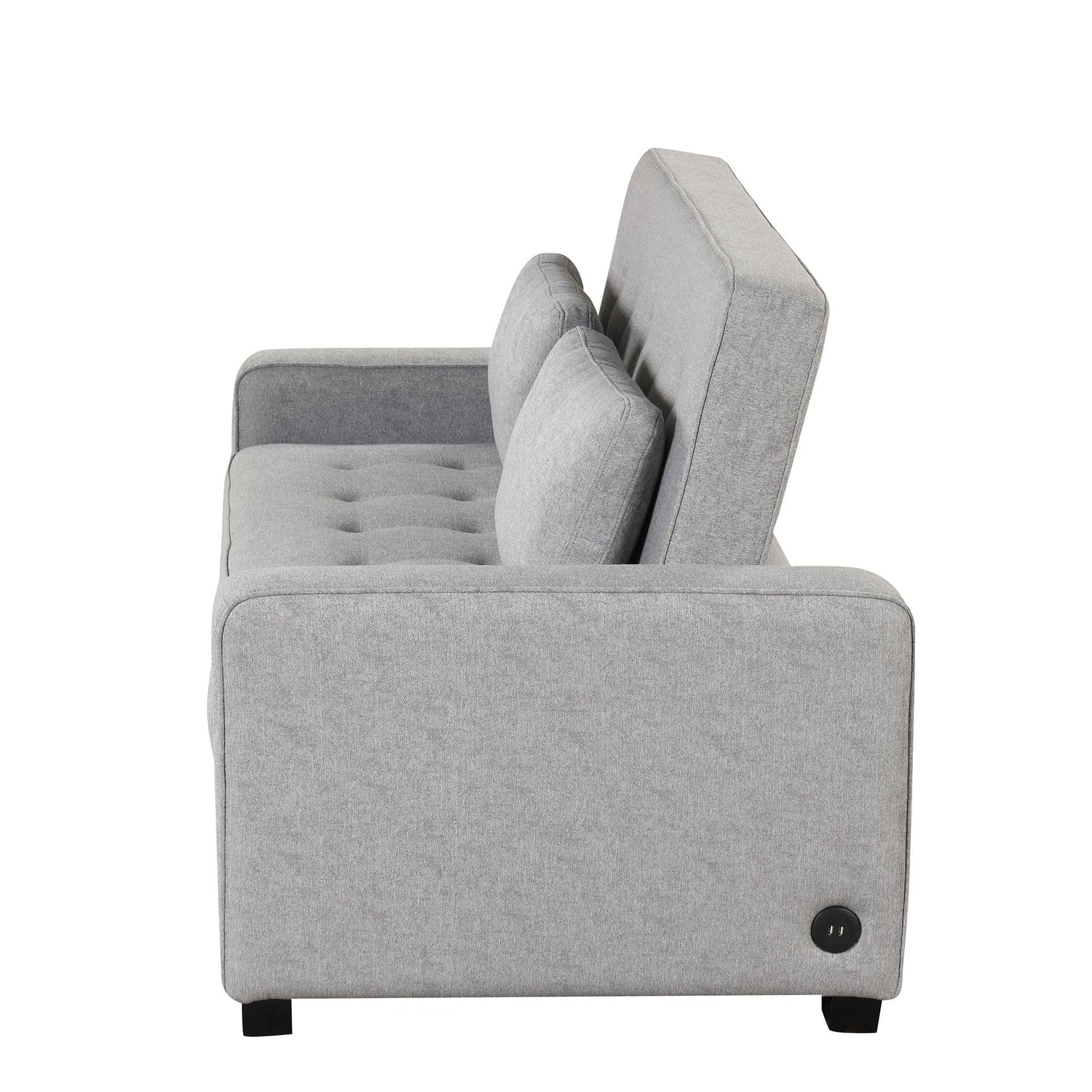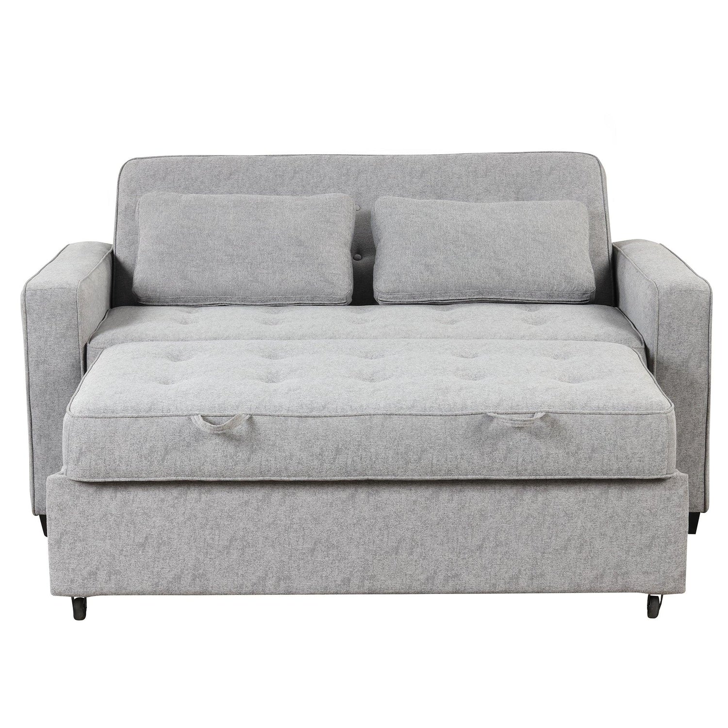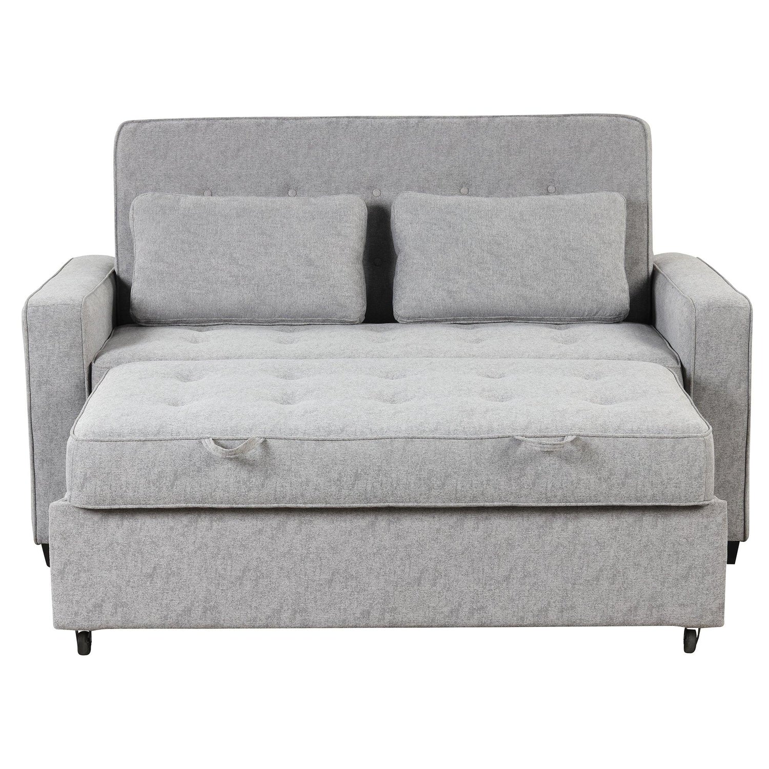66.5" Upholstered Loveseat With Pull Out Bed, Two Throw Pillows, Dual USB Charging Port and Adjustable Backrest - Light Gray - Furniture Home Direct