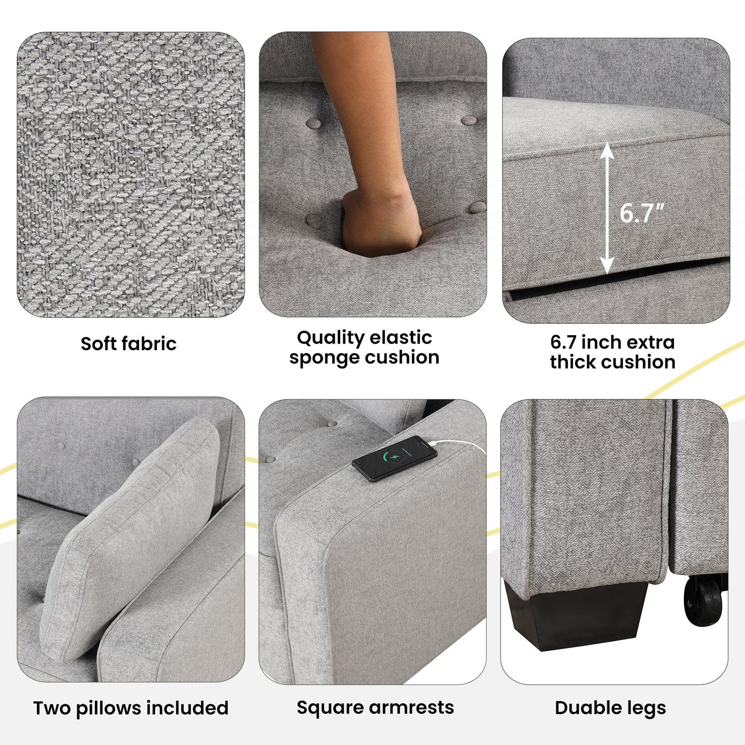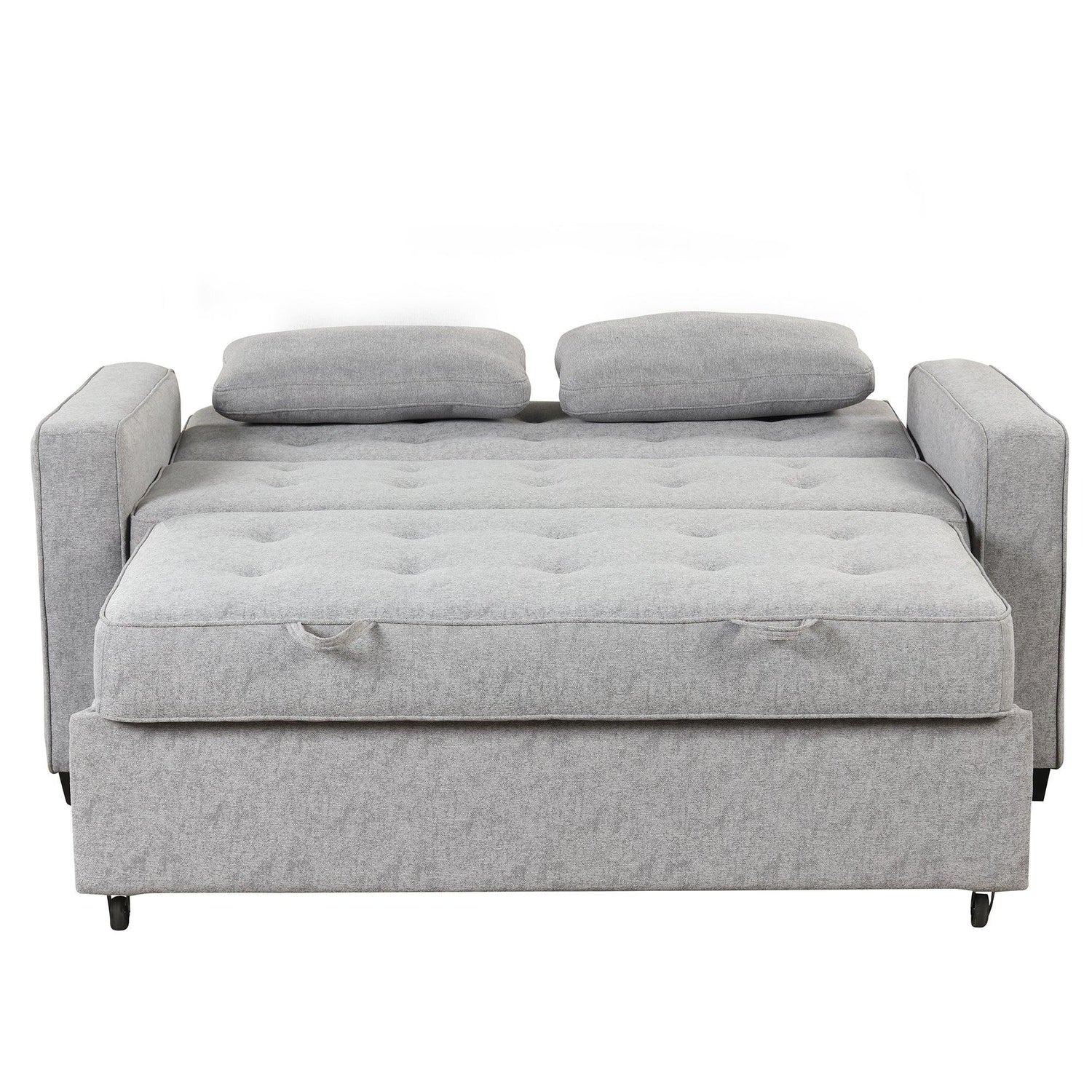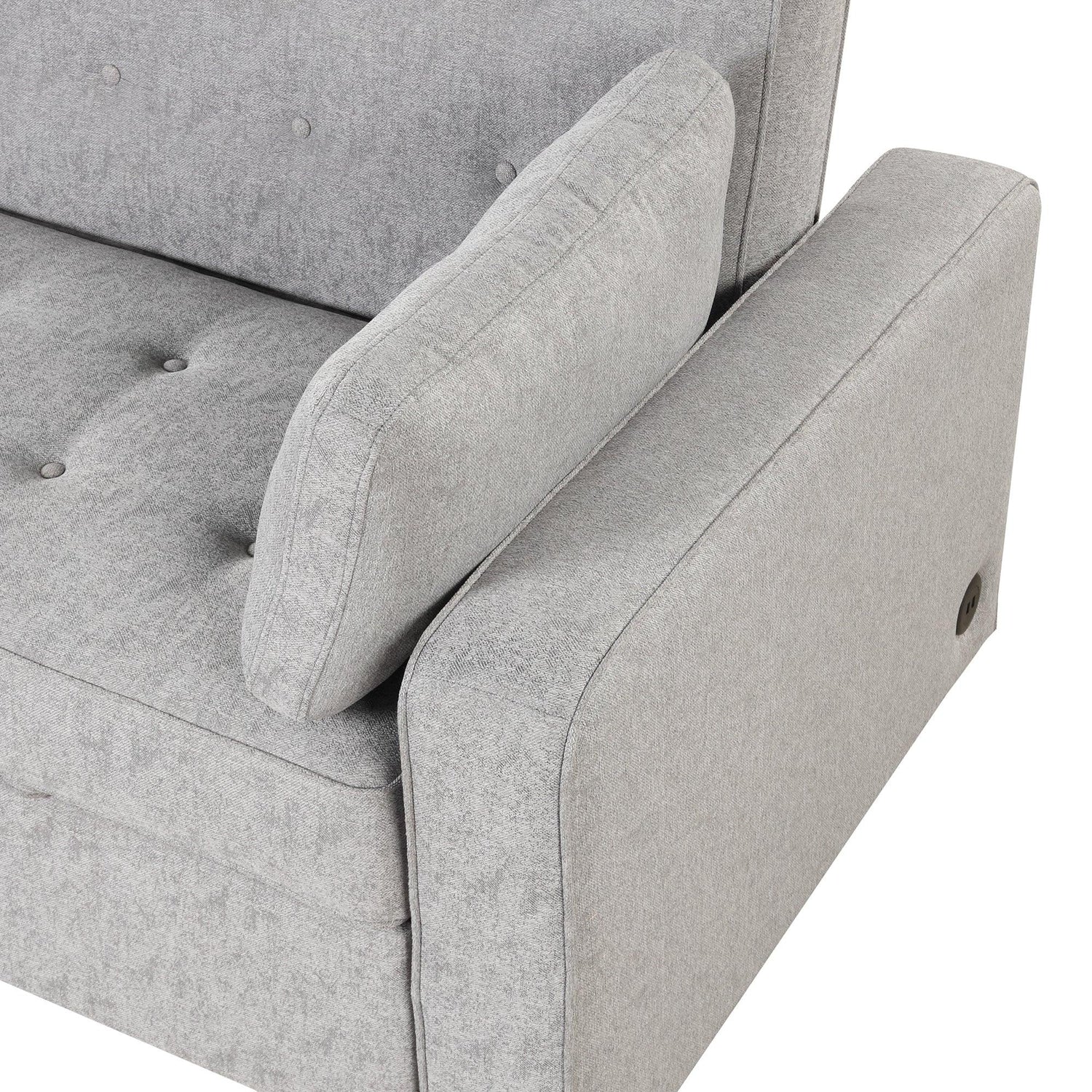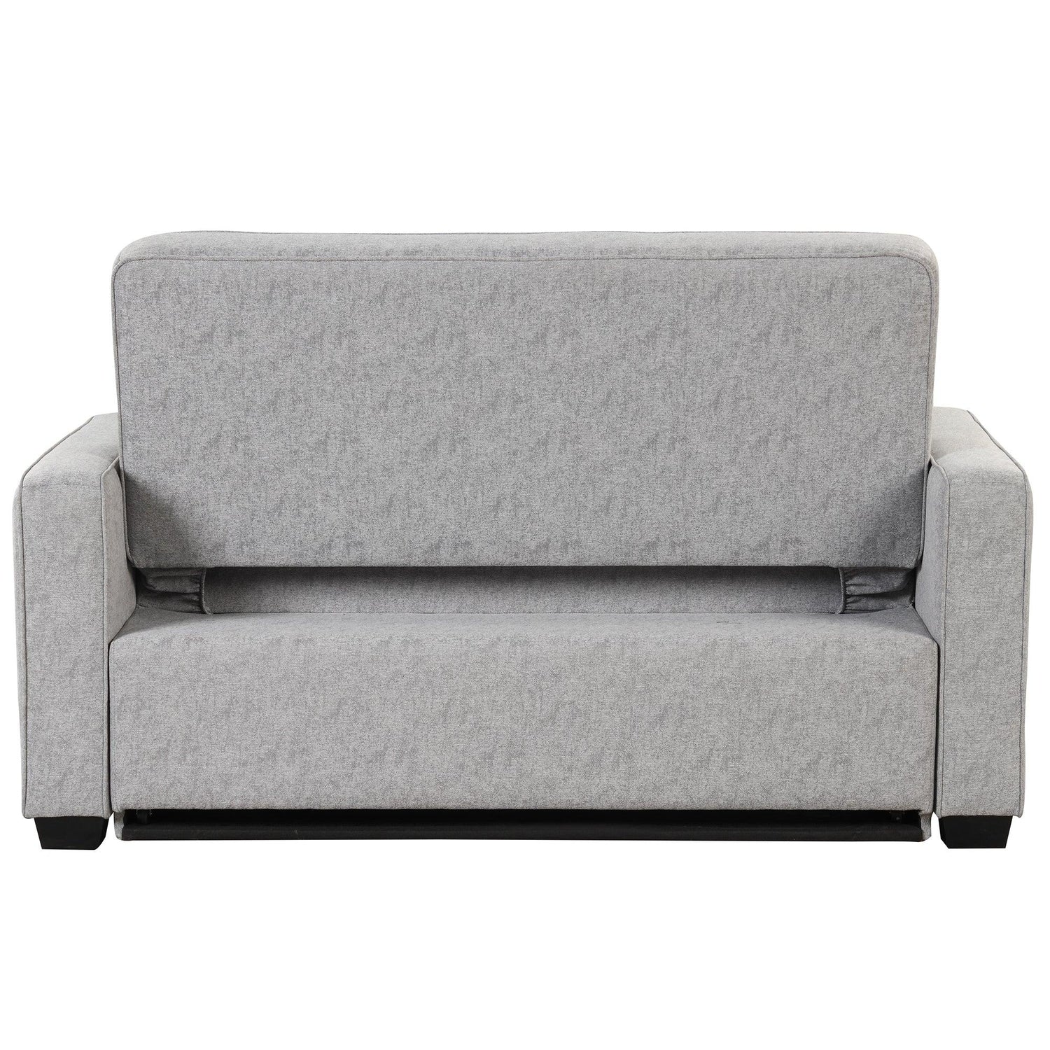 66.5" Upholstered Loveseat With Pull Out Bed, Two Throw Pillows, Dual USB Charging Port and Adjustable Backrest - Light Gray - Furniture Home Direct