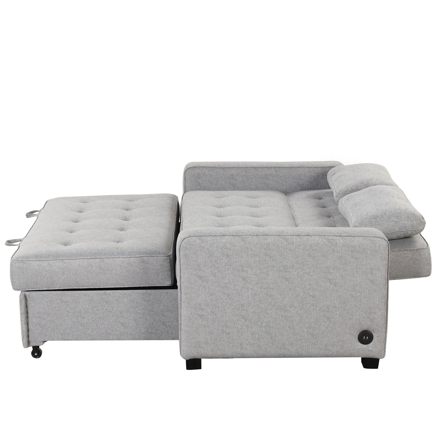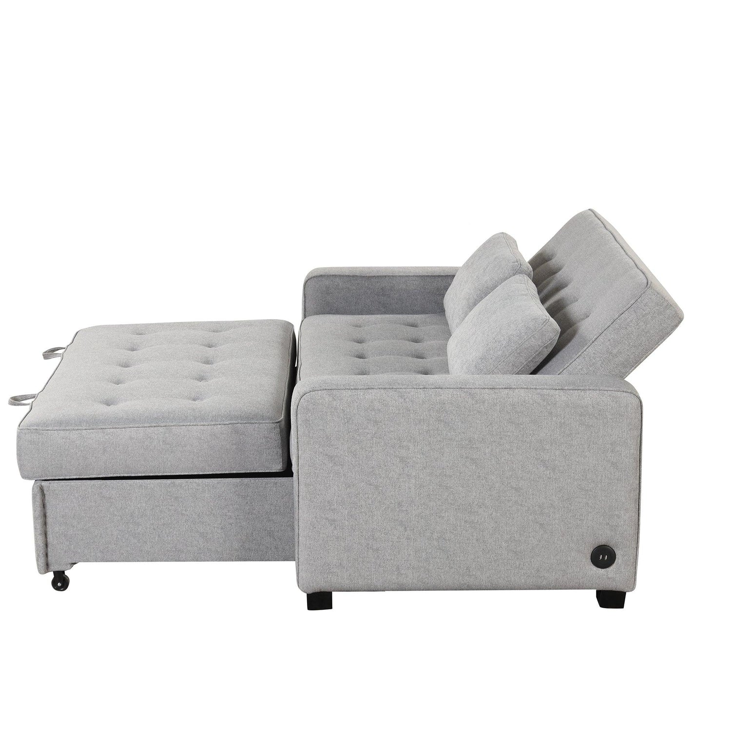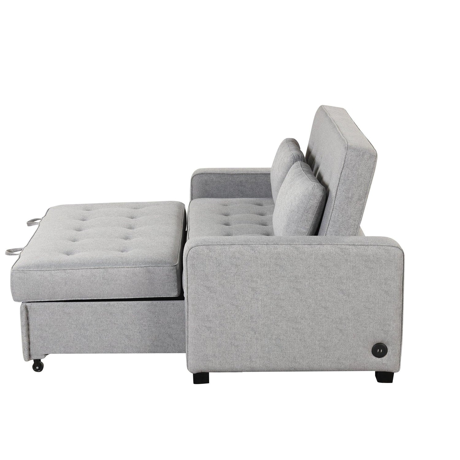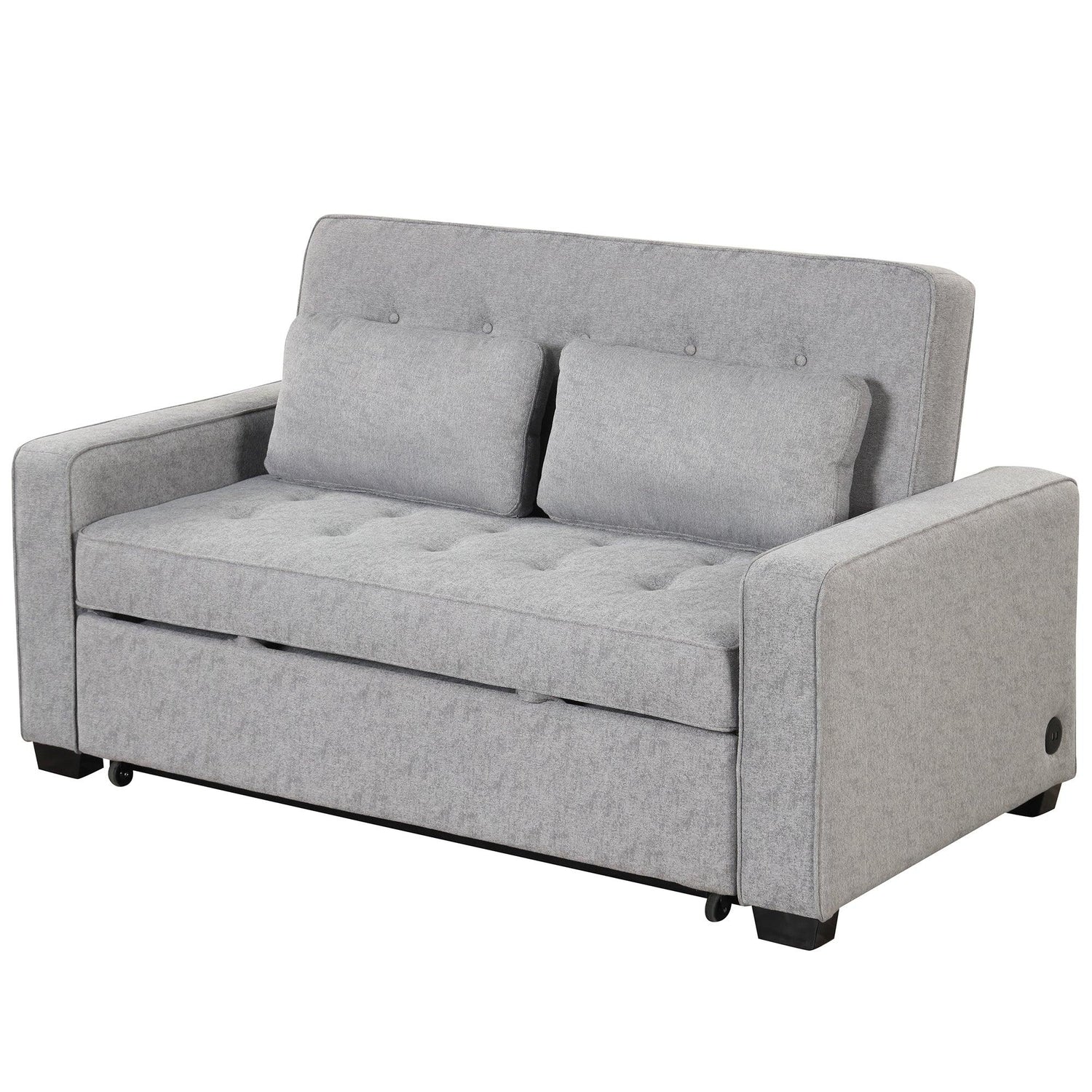 66.5" Upholstered Loveseat With Pull Out Bed, Two Throw Pillows, Dual USB Charging Port and Adjustable Backrest - Light Gray