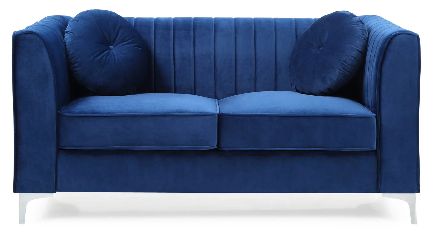 Pair the Delray with a glass‑top side table or a slim metal coffee table to echo the chrome legs, or soften the look with warm wood accents and textured rugs. Accent with jewel‑tone cushions or metallic accessories for a glamorous palette, or keep it tonal for a calm, contemporary lounge.