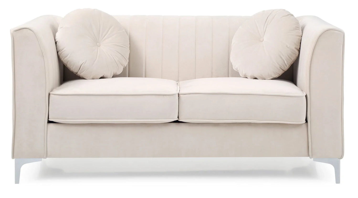 Included items: Loveseat with two round accent pillows (as shown).