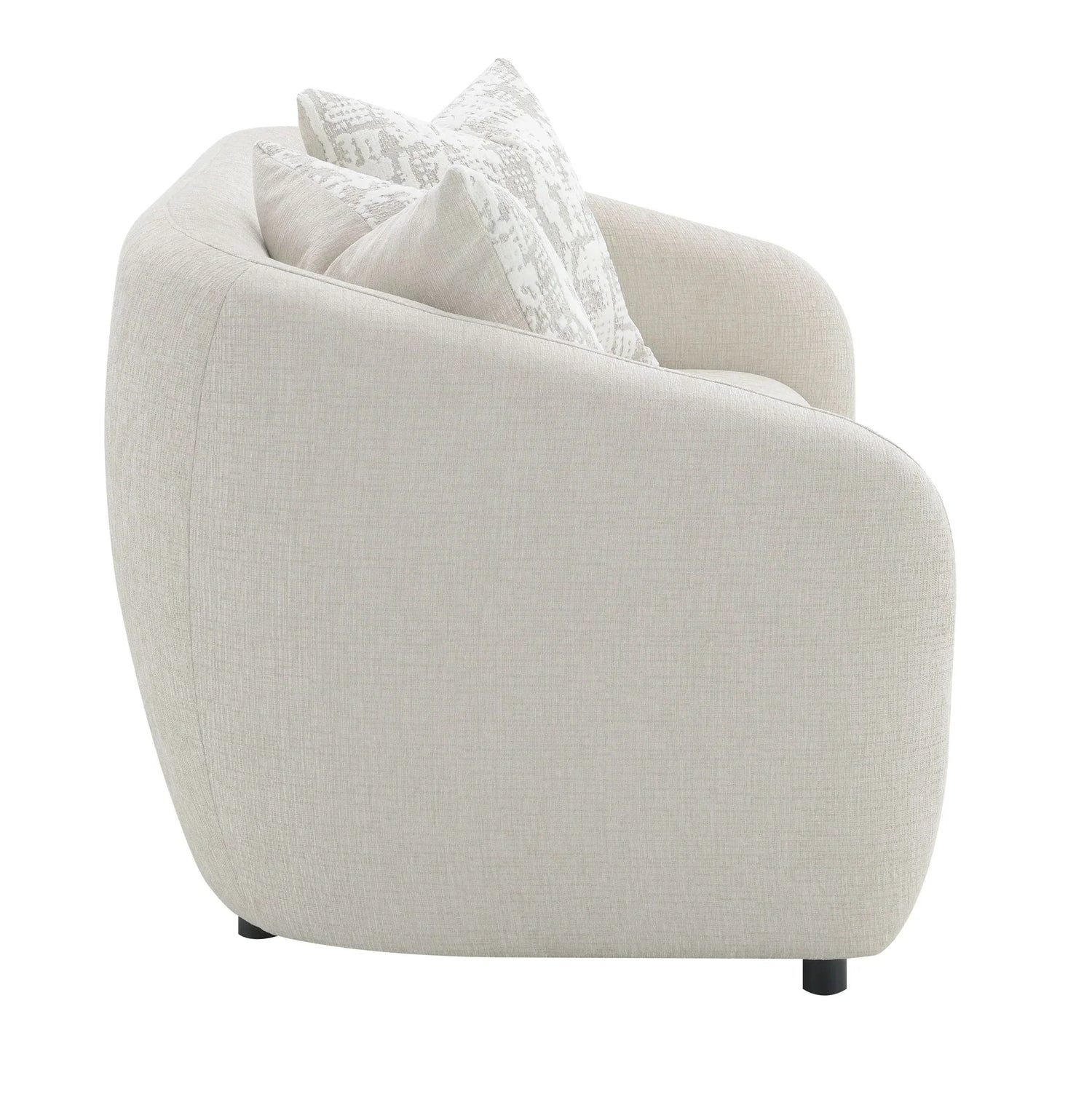Everyday use is straightforward: the Etienne is a stationary loveseat built on a sturdy wooden inner frame for reliable support, upholstered in a soft beige linen-effect fabric that layers easily with textured throws or patterned pillows. The set includes three accent pillows to complete the look and add visual depth; note that natural fibers and screens may show slight color and texture variation.
