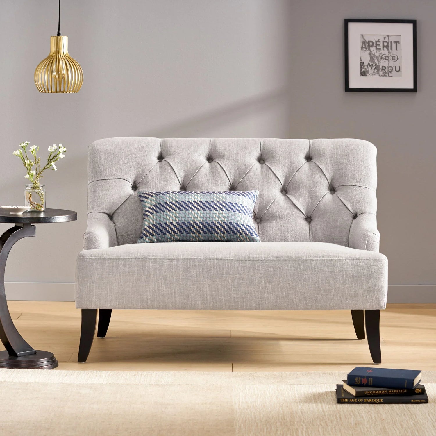 Nicole - French Style Upholstered Loveseat With Tufted Backrest - Light Gray