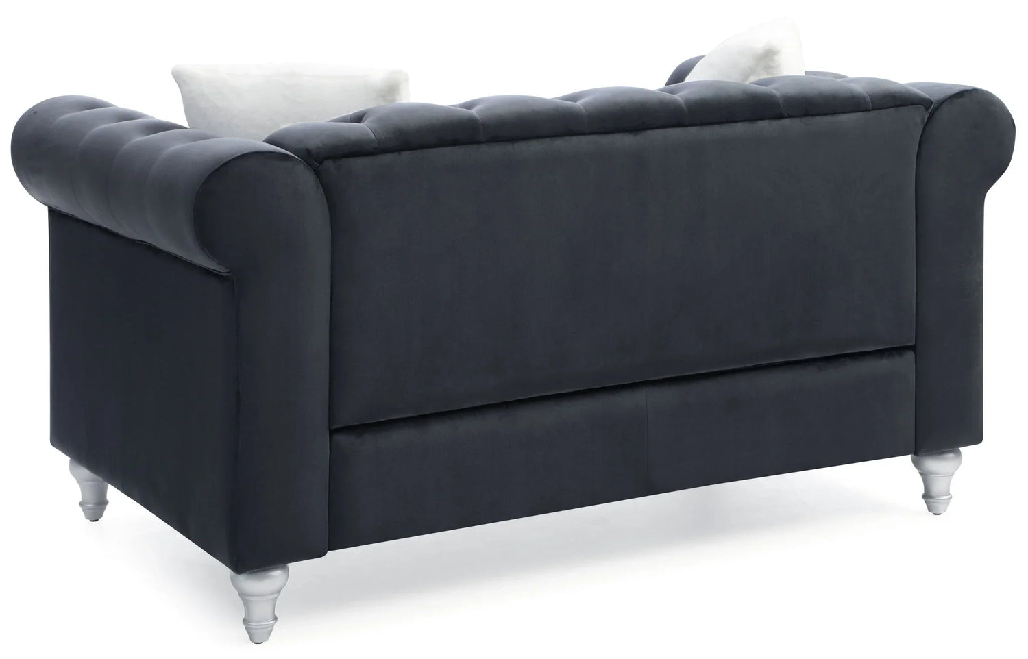 Built with design details that show up close—hand‑applied nailhead trim, rolled arms with deep button tufting, and hand‑painted wood legs—this loveseat pairs classic Chesterfield silhouette cues with a contemporary finish. The durable construction and soft velvet face make it easy to live with while giving a richly tailored statement to modern and transitional interiors.
