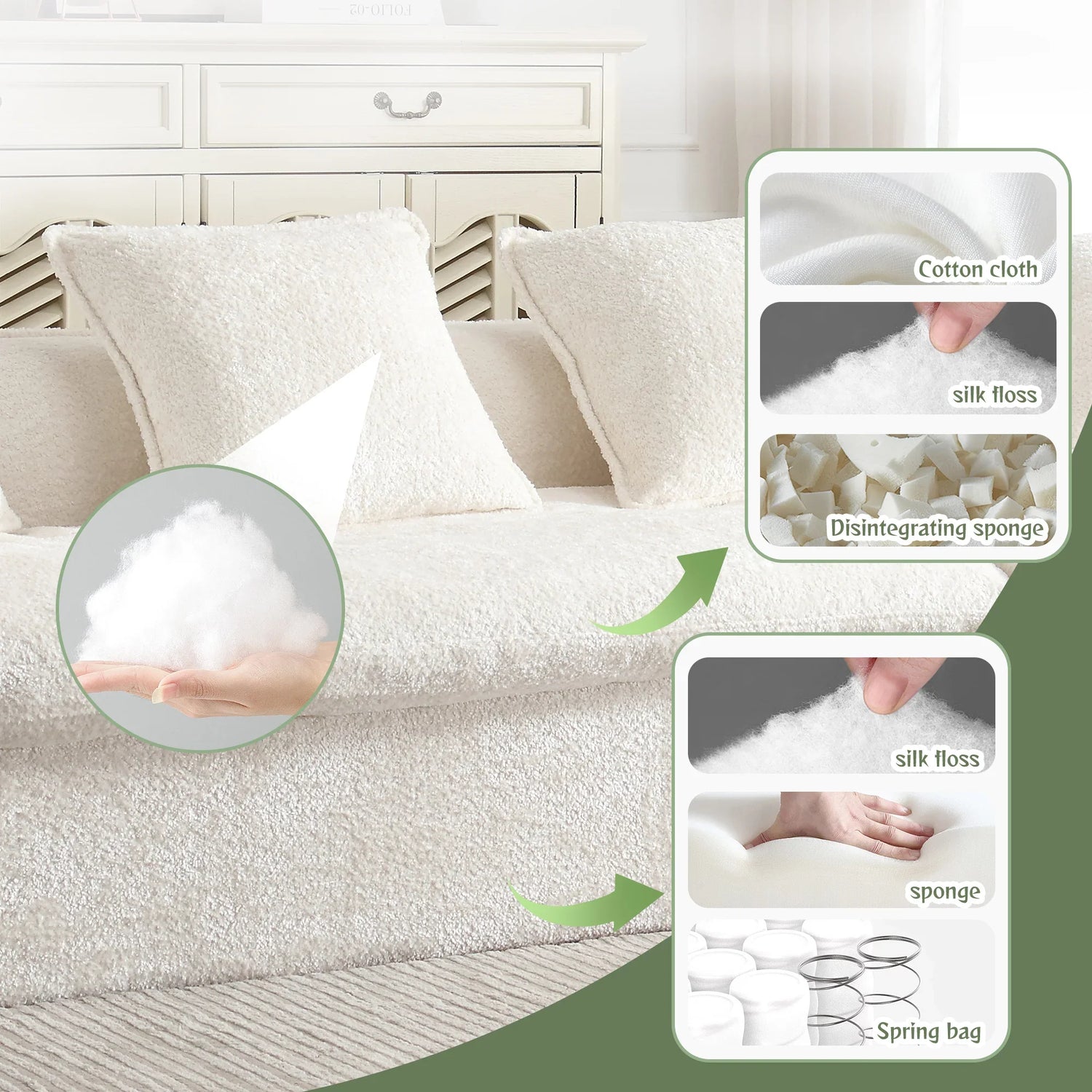 • Neutral styling that layers easily: Beige chenille acts as a calm backdrop for pillows, throws, and seasonal accents.