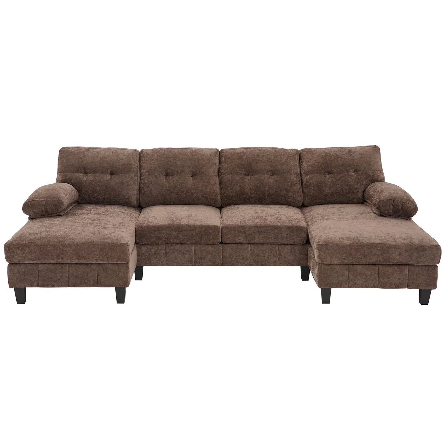 Modern U Shaped Sectional Sofa With Dual Chaise Lounges Storage Pockets And Armrest Pillows - Brown