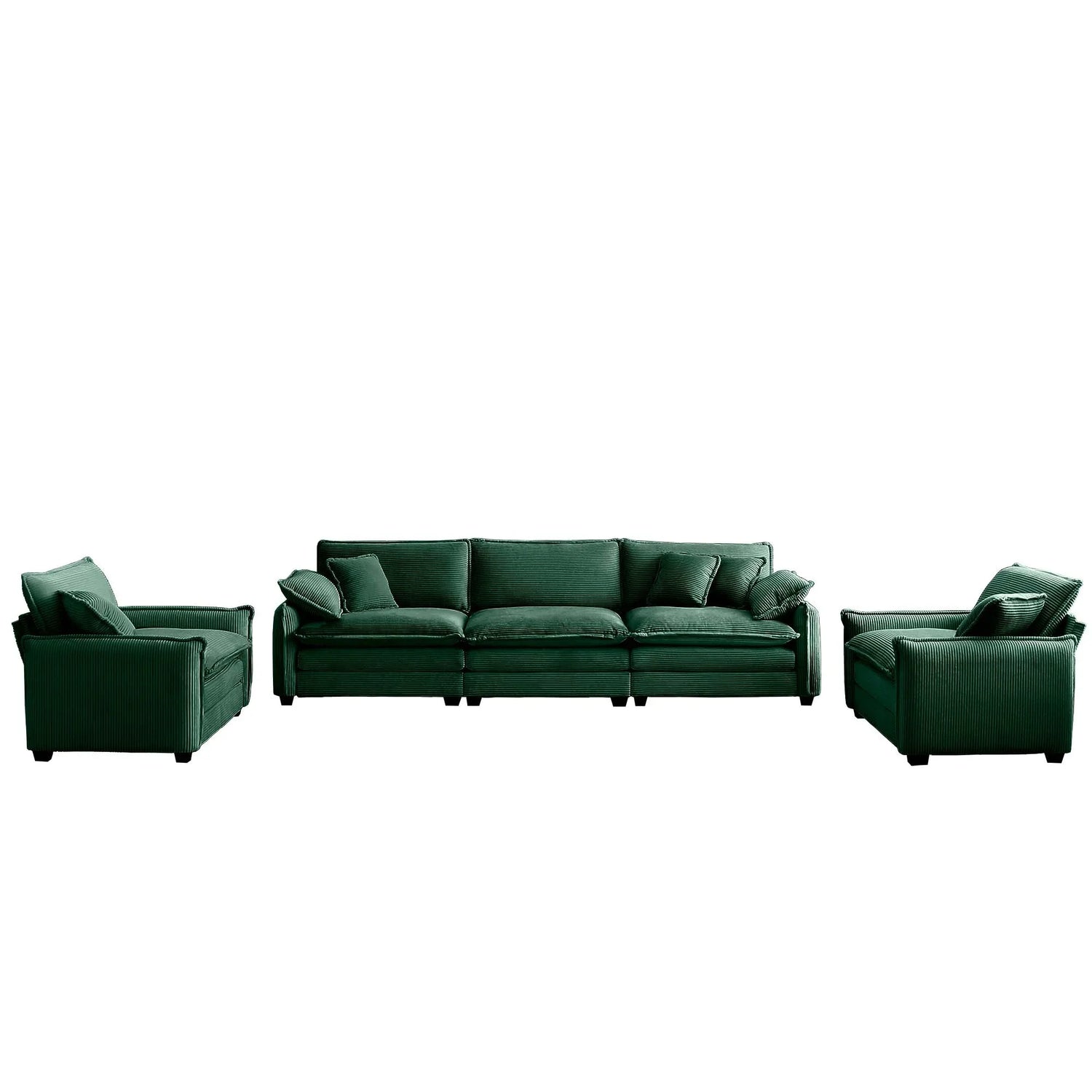 3 Piece Living Room Set in Corduroy Fabric - Green