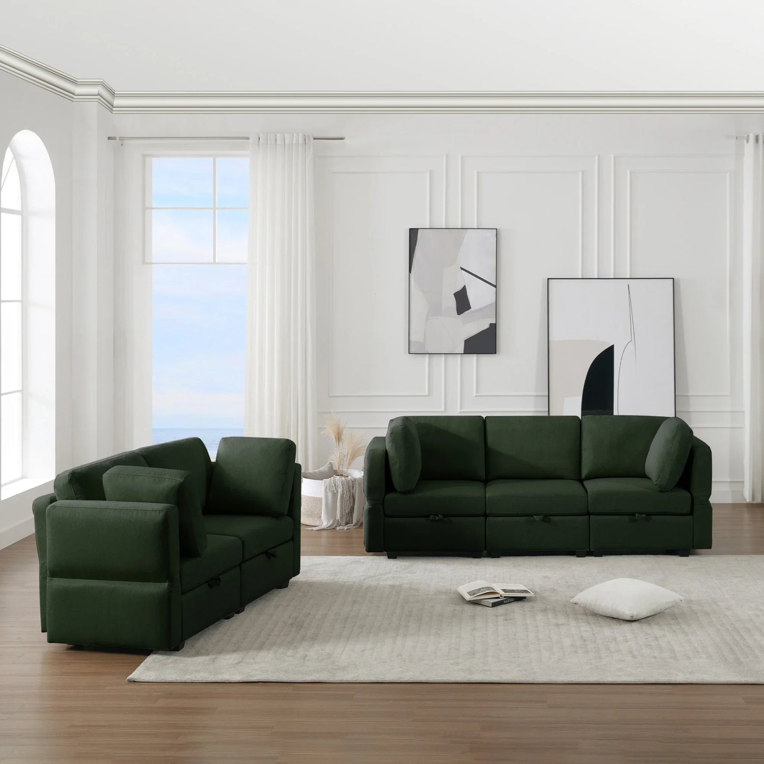 Each seat features spacious storage beneath the cushion, perfect for blankets, pillows, and other essentials. Keep your living space tidy and organized without sacrificing style.Customizable Backrests and Armrests: