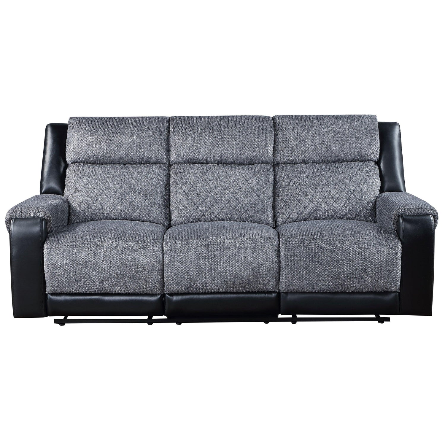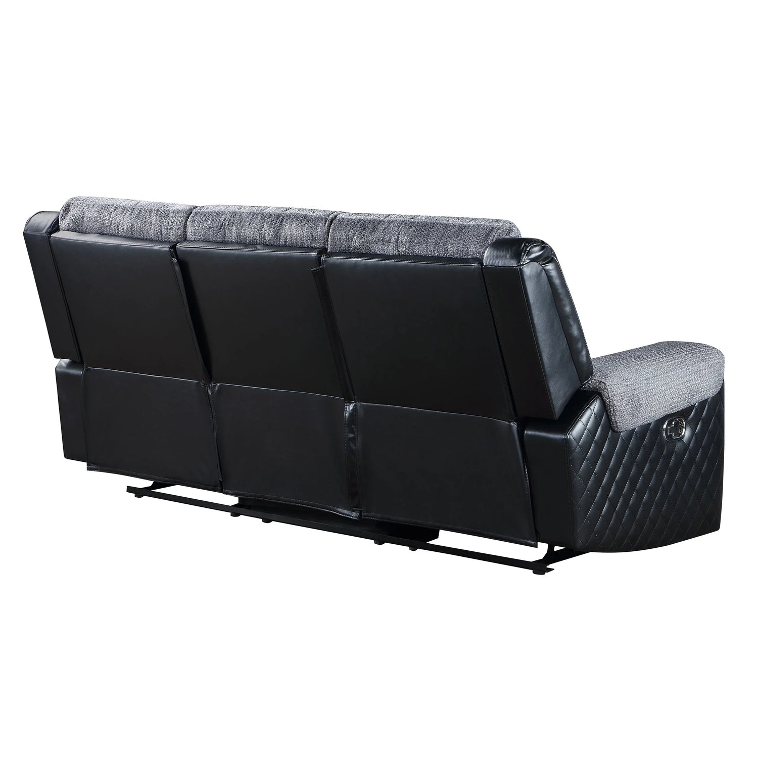 Reclining Living Room Set In Grey Fabric And Quilted Black is backordered and will ship as soon as it is back in stock.
