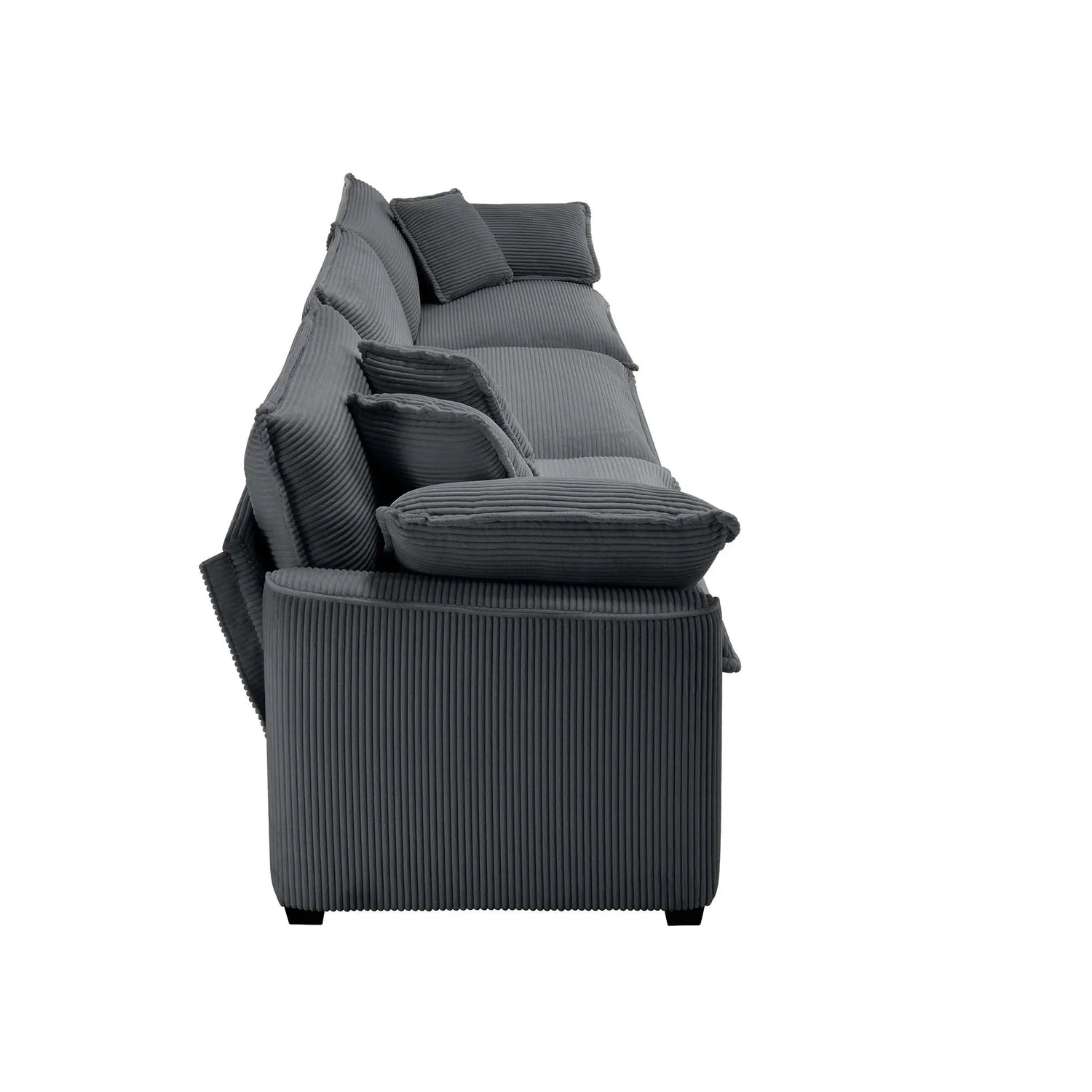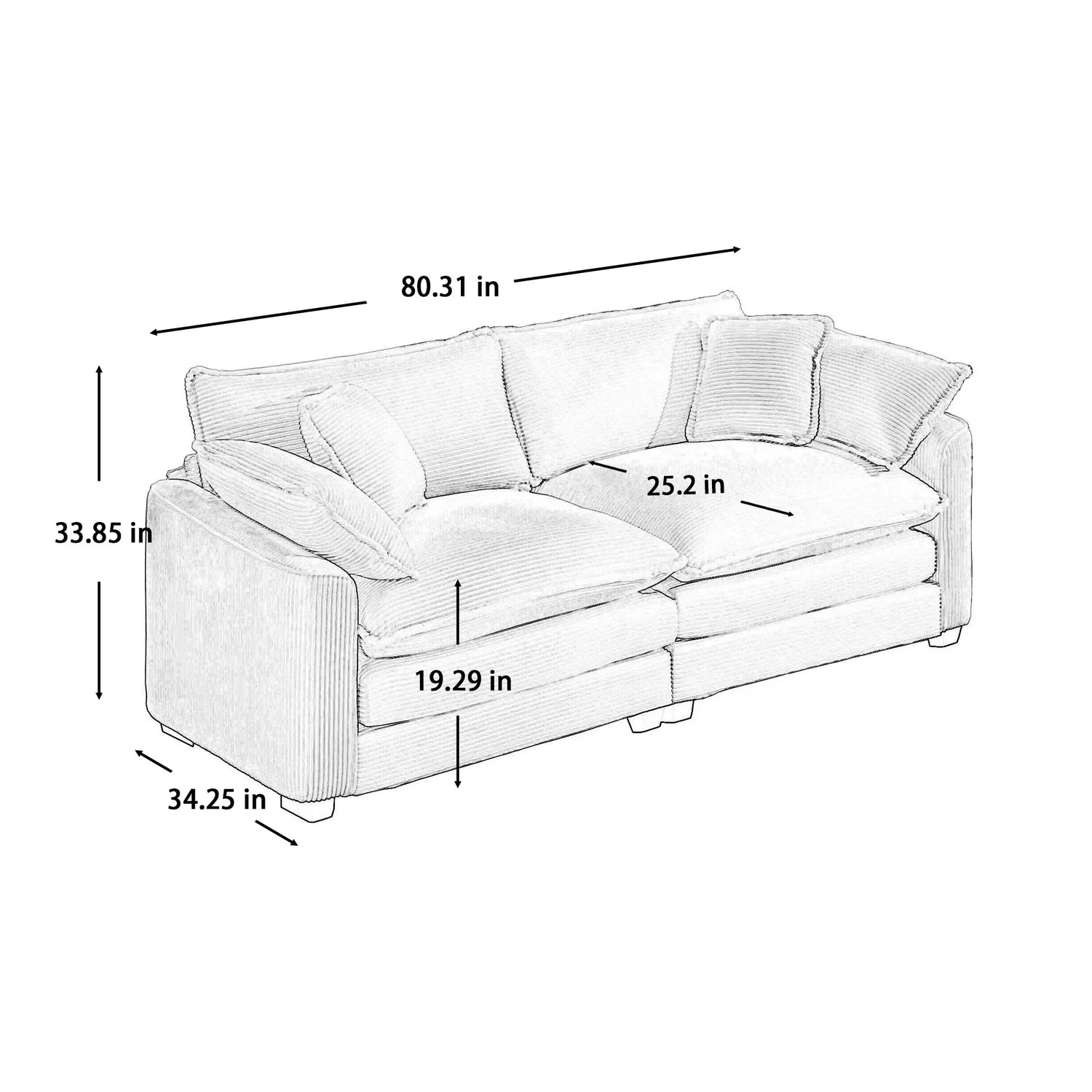 Designed for relaxed daily use, the sofa and loveseat feature deep seats and loose back cushions for sink-in comfort and easy rearranging. The charcoal-gray corduroy fabric shown in the photos reads neutral and contemporary with cool undertones; keep in mind that natural light and screen settings can slightly alter how gray appears. Construction details are aimed at comfort and durability; where exact frame and weight specs aren’t provided, expect standard supportive frames and foam-wrapped seat cushions suited for frequent use.