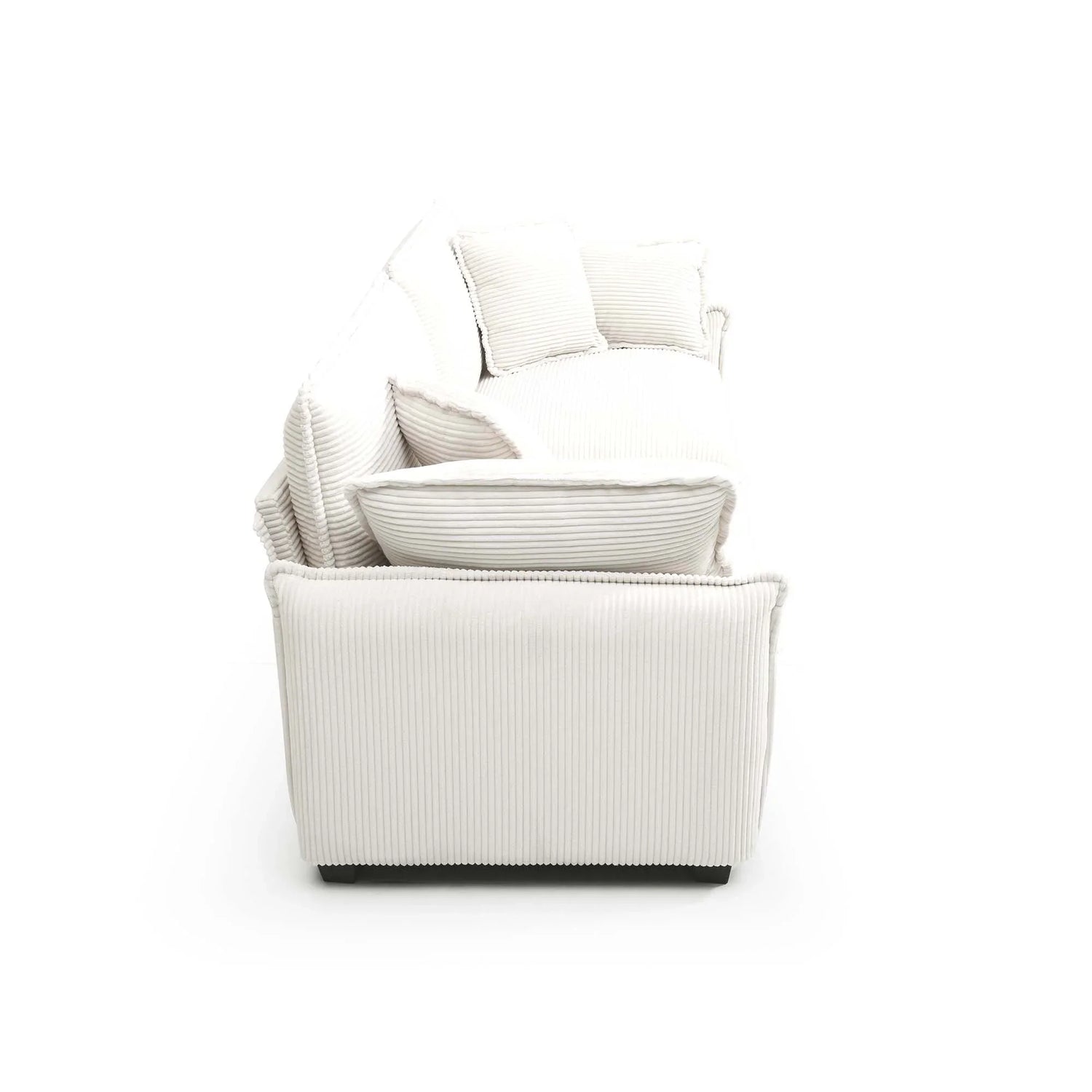 Luxurious and Sophisticated 3 Piece Corduroy Living Room Set with Soft Cushions and Pillows - White