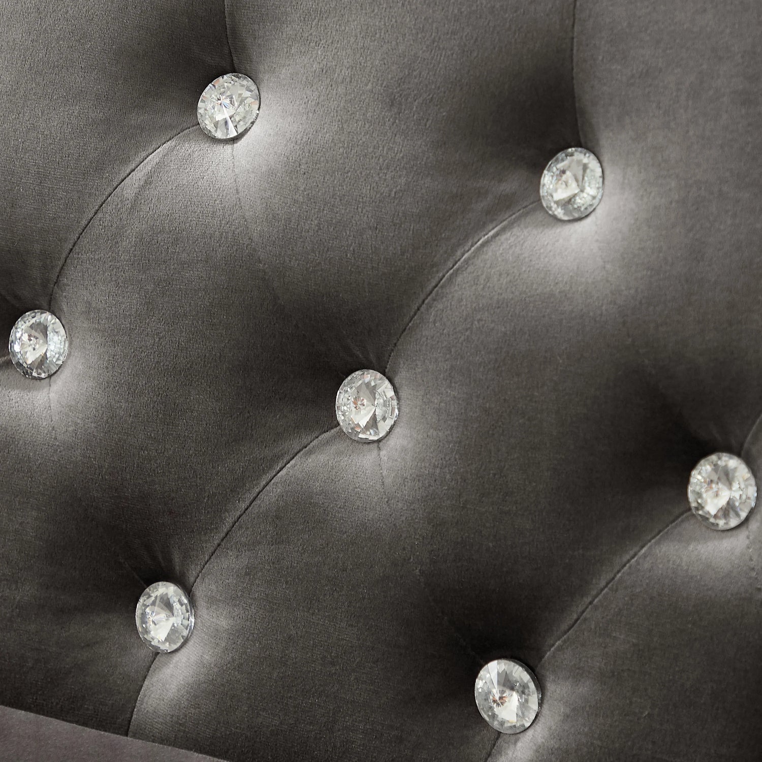 Stylish Design: The tufted detailing inside and outside of the arms and back, jeweled buttons, and silver nailhead trim combine to create a modern yet casual vibe. This timeless design integrates current furniture trends to elevate your home’s decor.