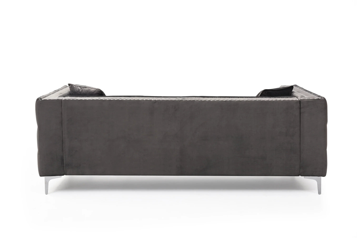 2 Piece Velvet Living Room Set with Sofa and Loveseat and 4 Pillows - Gray