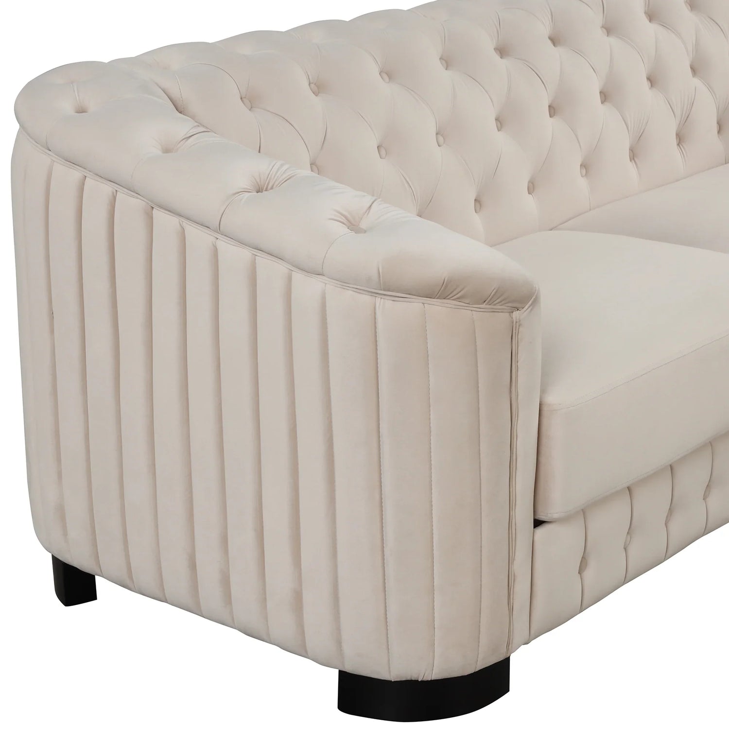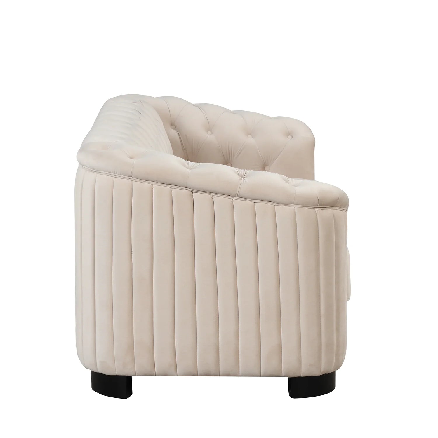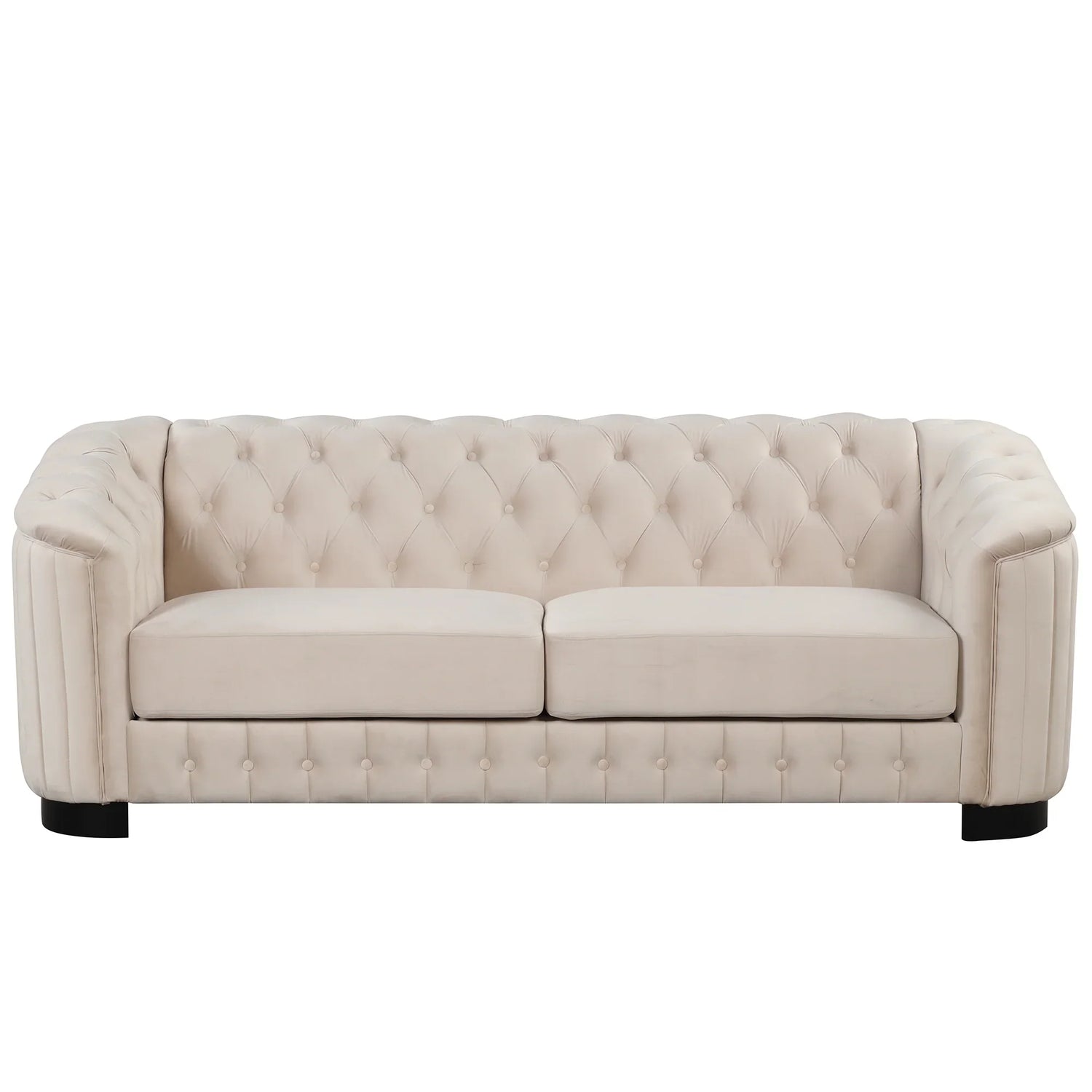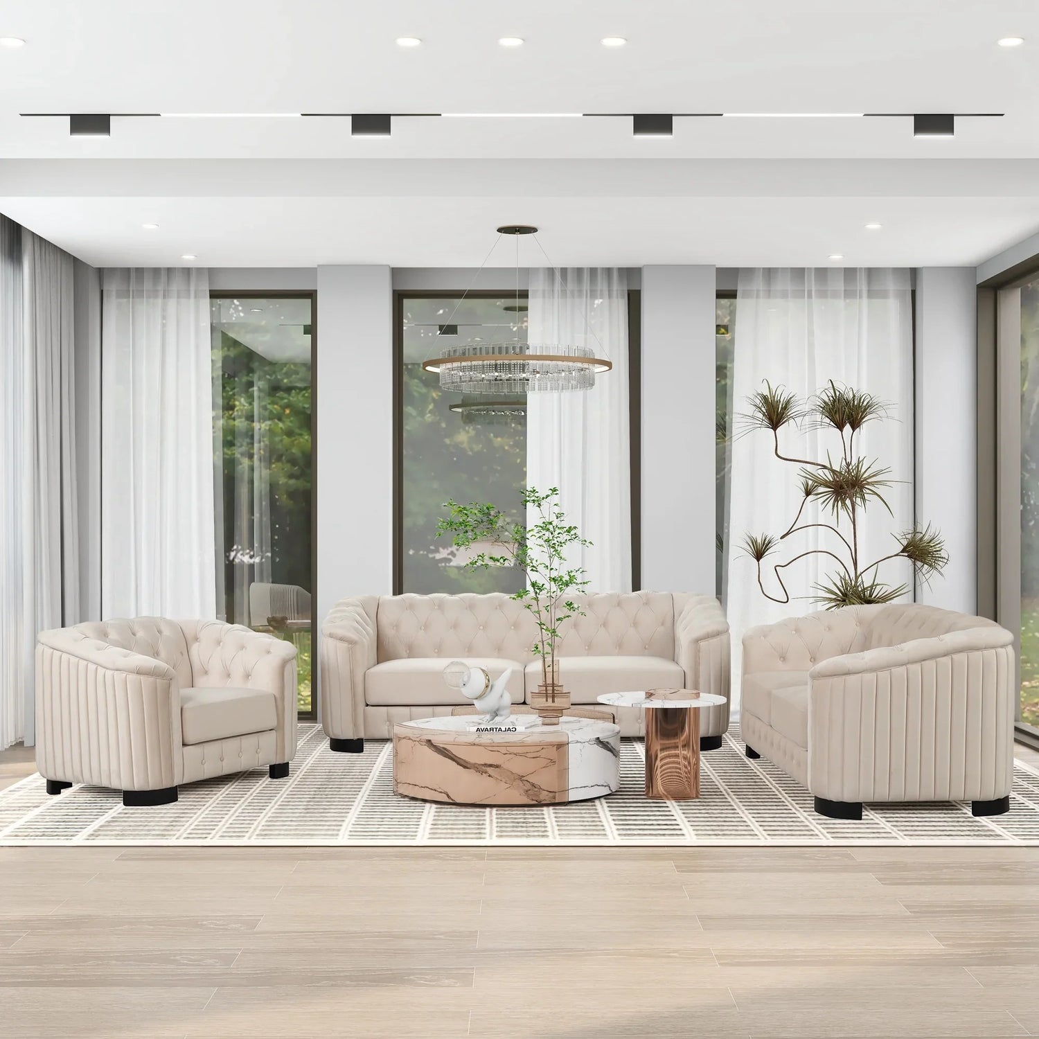 Modern 3-Piece Velvet Upholstered Living Room Set Including Sofa, Love Seat and Chair, Beige