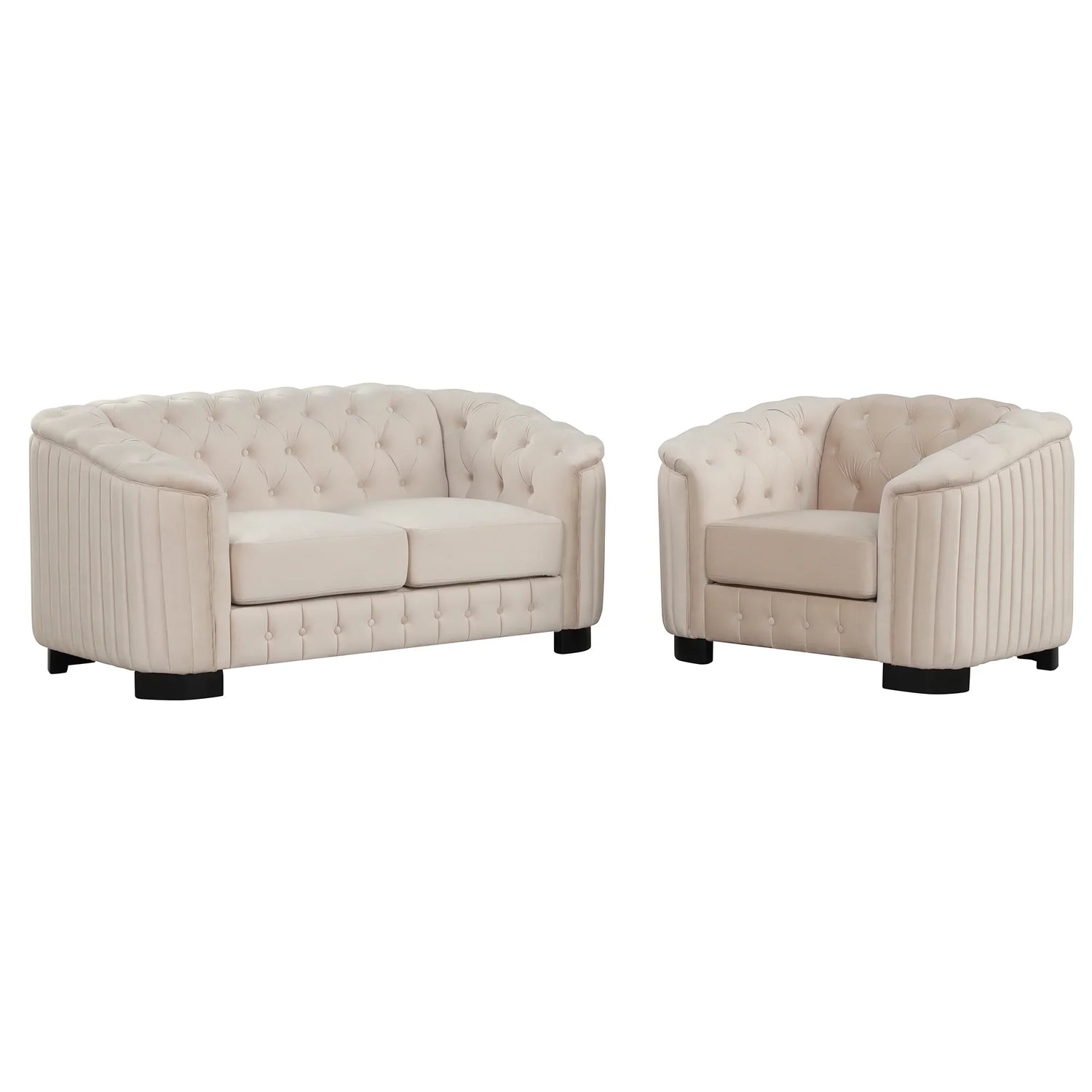 Modern 3-Piece Velvet Upholstered Living Room Set Including Sofa, Love Seat and Chair, Beige is backordered and will ship as soon as it is back in stock.