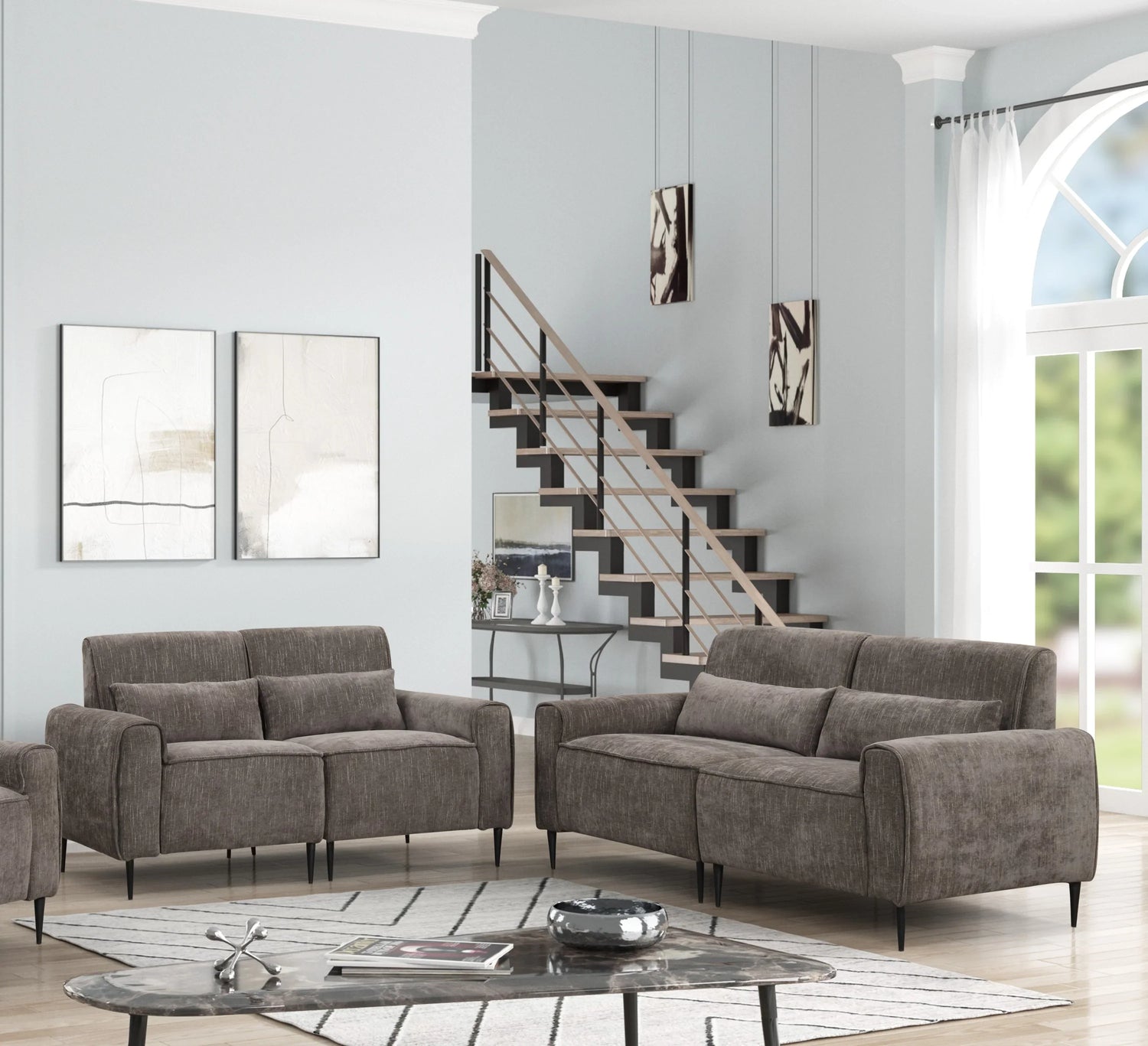 Valentina 74" Gray Chenille Sofa and Loveseat Living Room Set