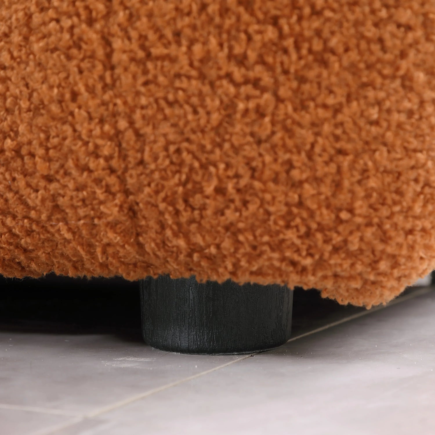 Upholstery: Boucle fabric — warm orange with light brown undertones. Note: natural fabrics and screens can show slight color variation in person.