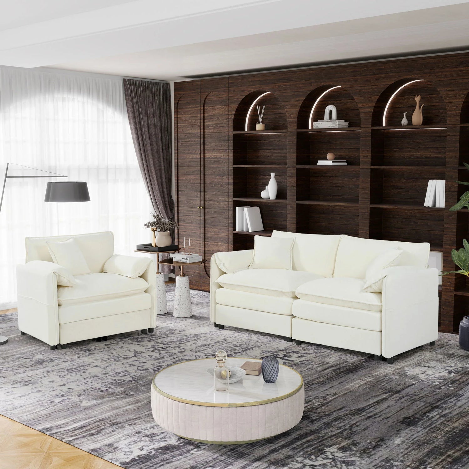 Modern Upholstered Chenille Loveseat And Armchair Set With Pillows
