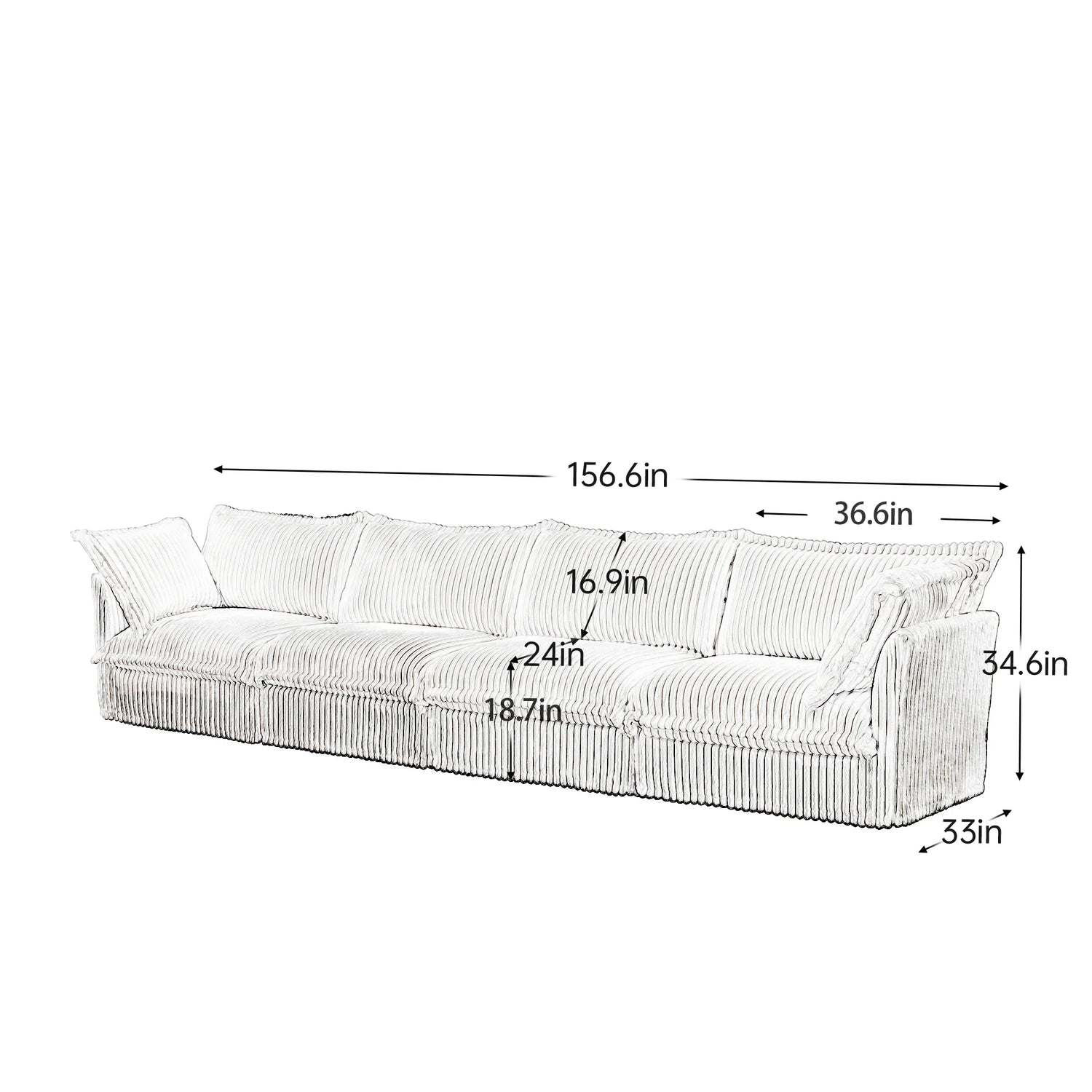 This long, stationary corduroy sofa is for anyone who wants a relaxed, contemporary centerpiece for a living room, family room, or casual lounge. With room for four, the low‑slung profile and deep, ribbed corduroy upholstery invite long afternoons of reading, streaming, or conversation while keeping a modern, textural look that complements neutral and Scandinavian‑inspired interiors.