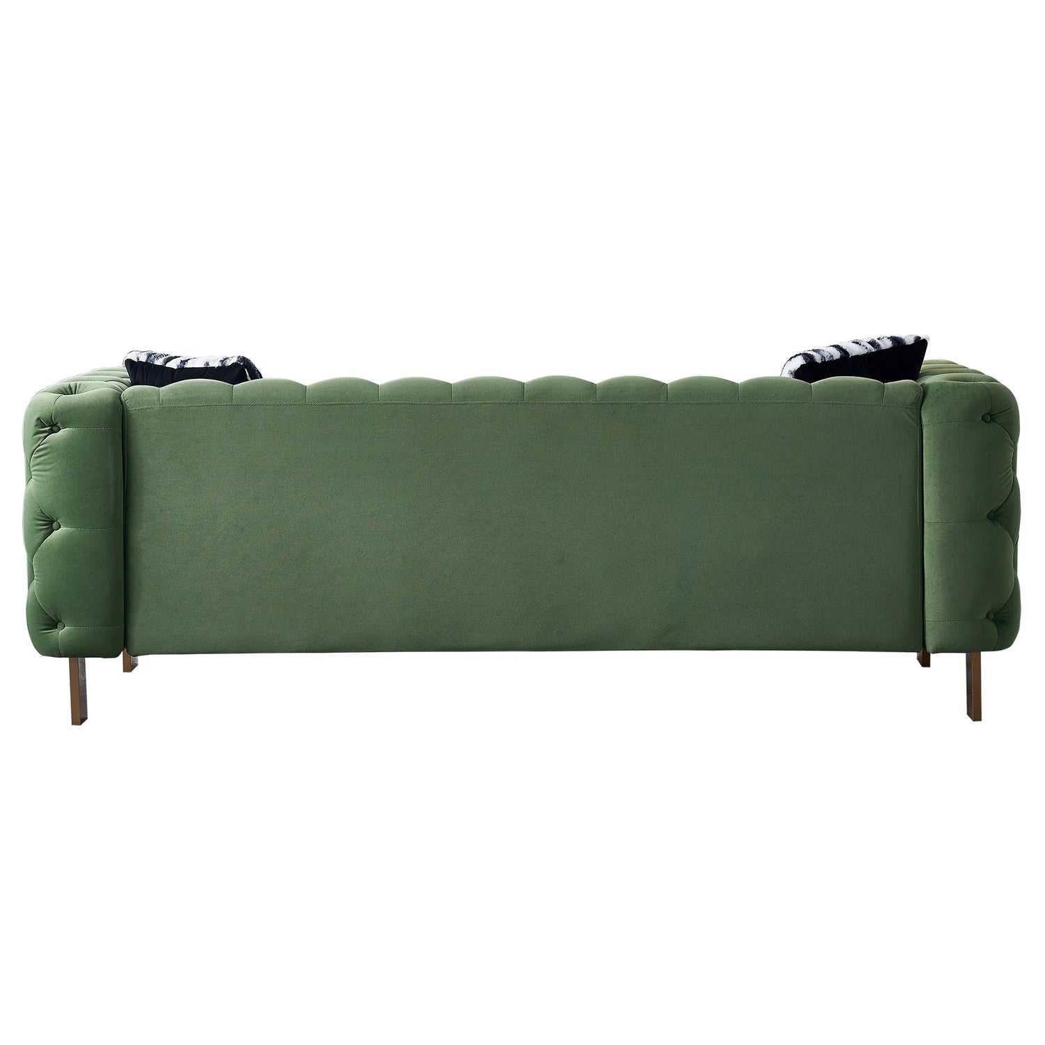 Designed for contemporary living rooms and stylish lounge areas, this Chesterfield Modern Tufted Velvet Sofa in mint green blends classic tailoring with a modern silhouette. It’s a three-seat sofa that suits apartment living, a city condo, or a bright family room where a statement piece is welcome—offering the visual drama of deep tufting with the approachable comfort of foam-cushioned seats.