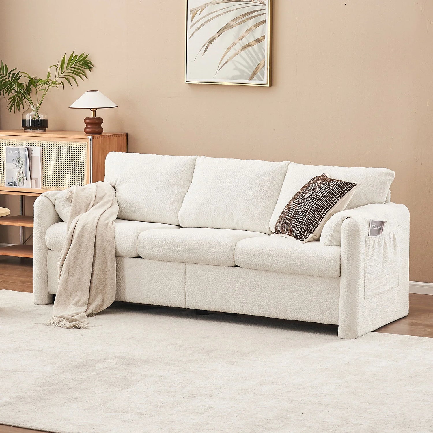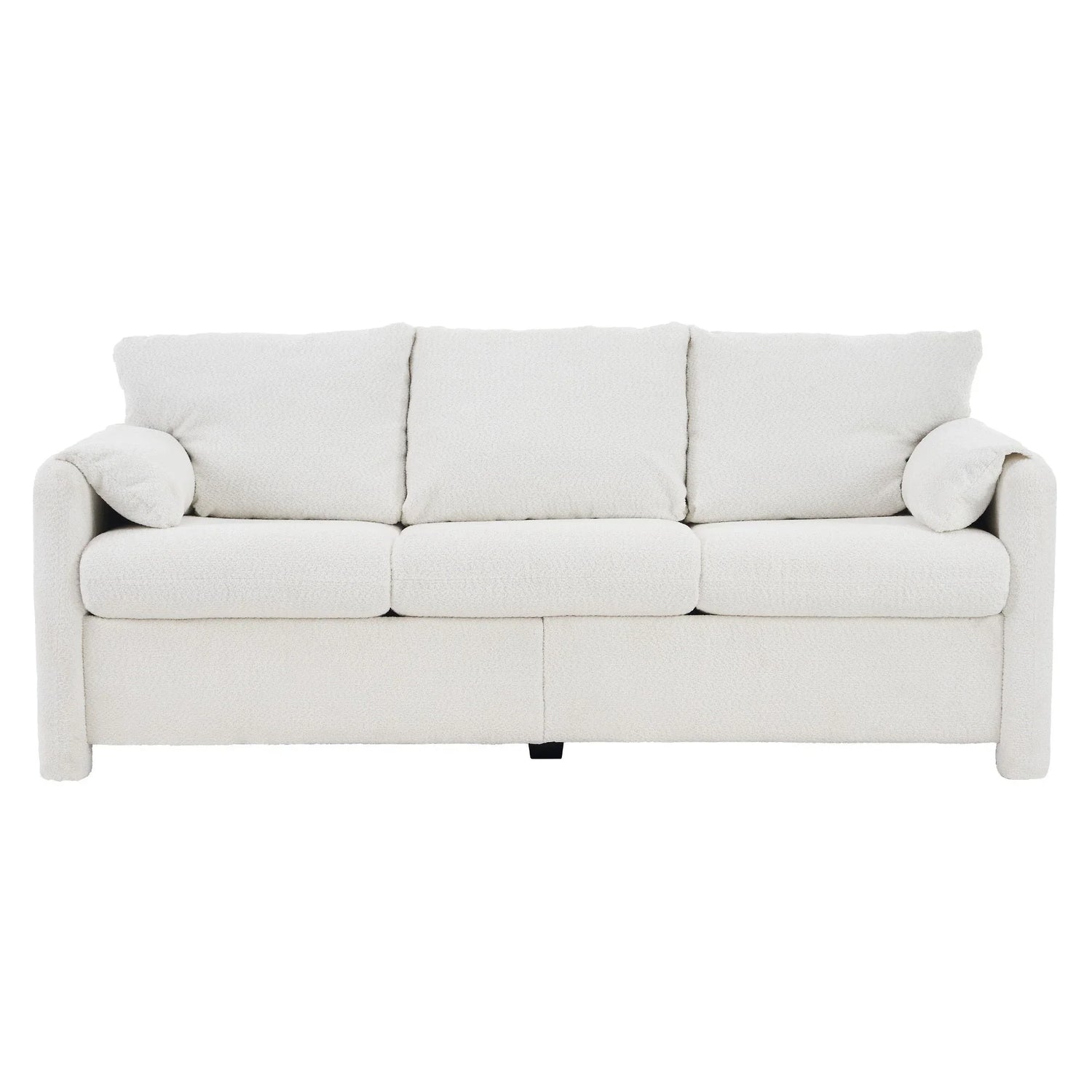 Modern 3 Seater Sofa Chenille Couch Plush Triple Seater Sofa With High Density Foam Cushions, Deep Seat Living Room Couch For Family Room, Apartment & Home Theater - Ivory White