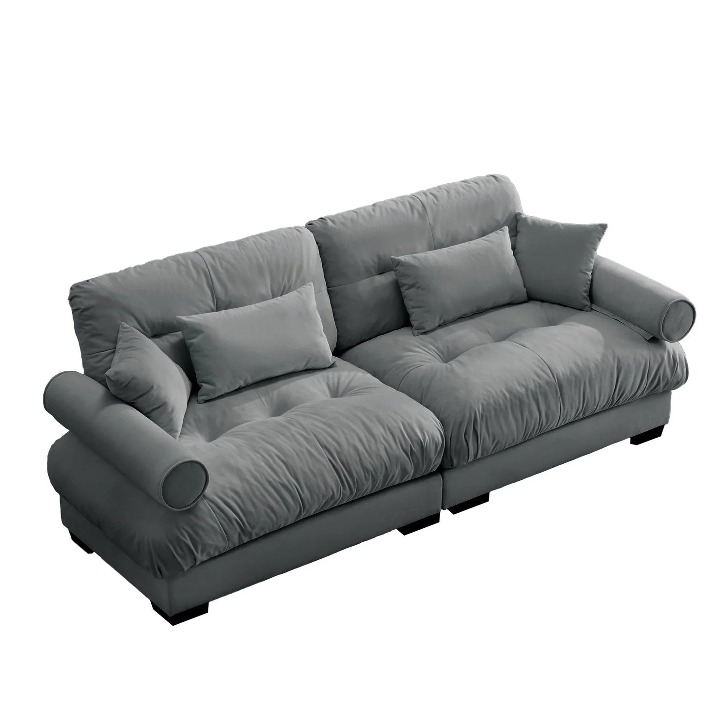 Modern Velvet 2 Seater Sofa With Bolstered Armrests And Pillows Large Size - Gray