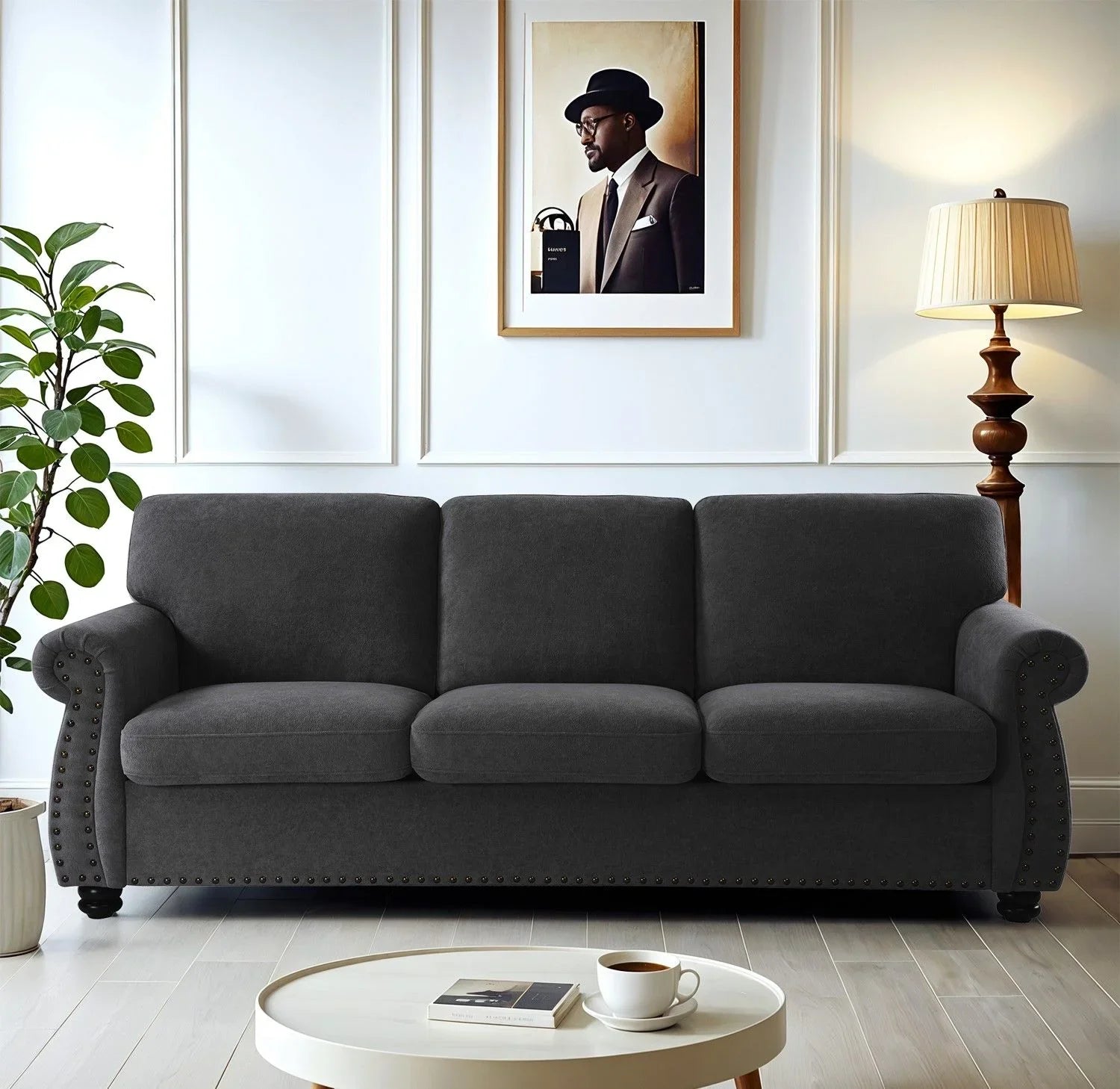 Soft Sofa, Upholstered 3 Seater Couch With High Density Foam, Loose Back Cushions And Turned Legs