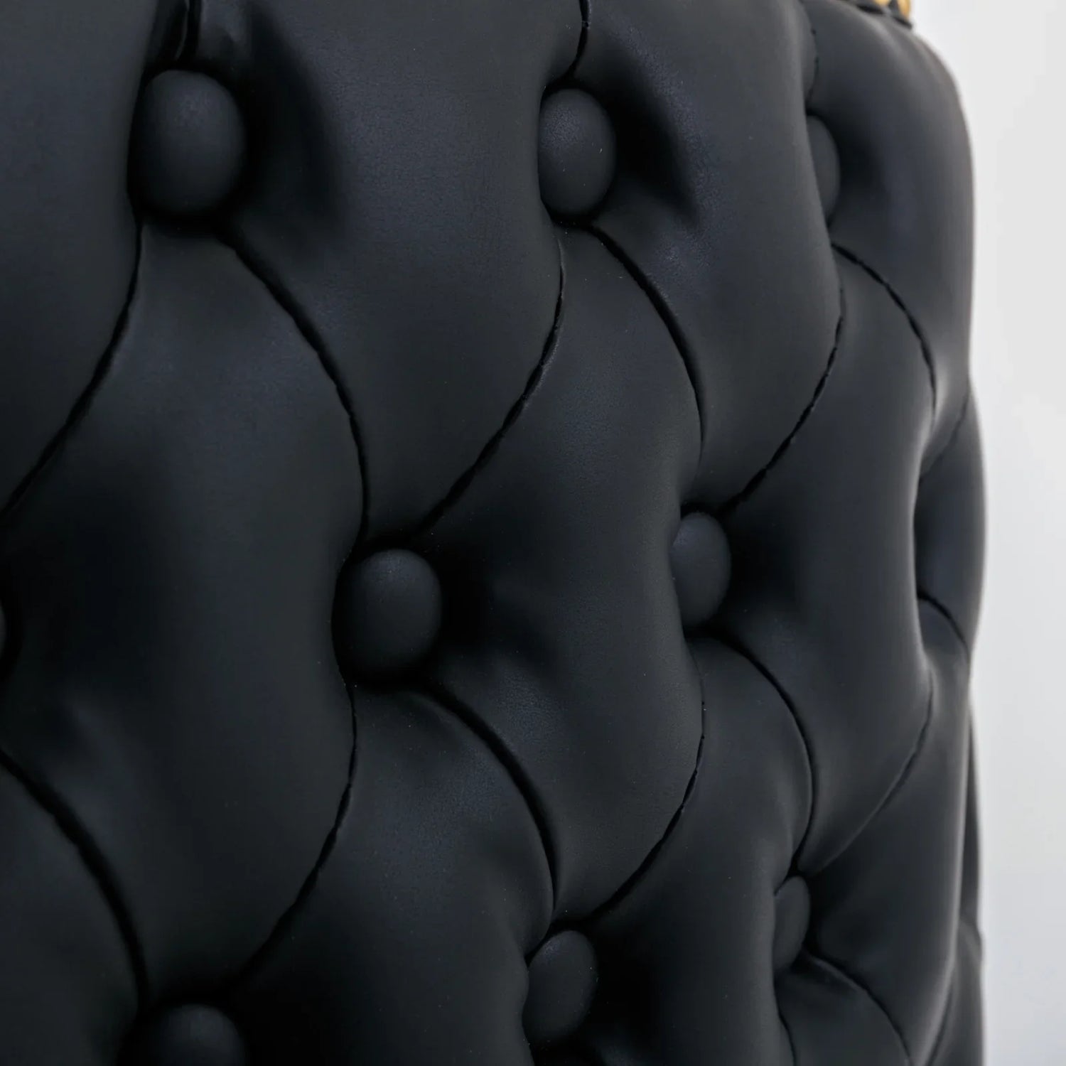 - Glam finishing details: Deep button tufting and gold nailhead trim elevate a modern kitchen or bar area.