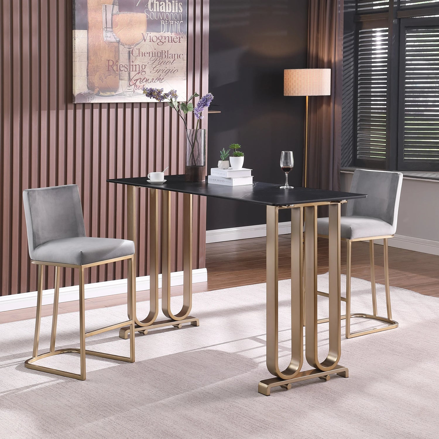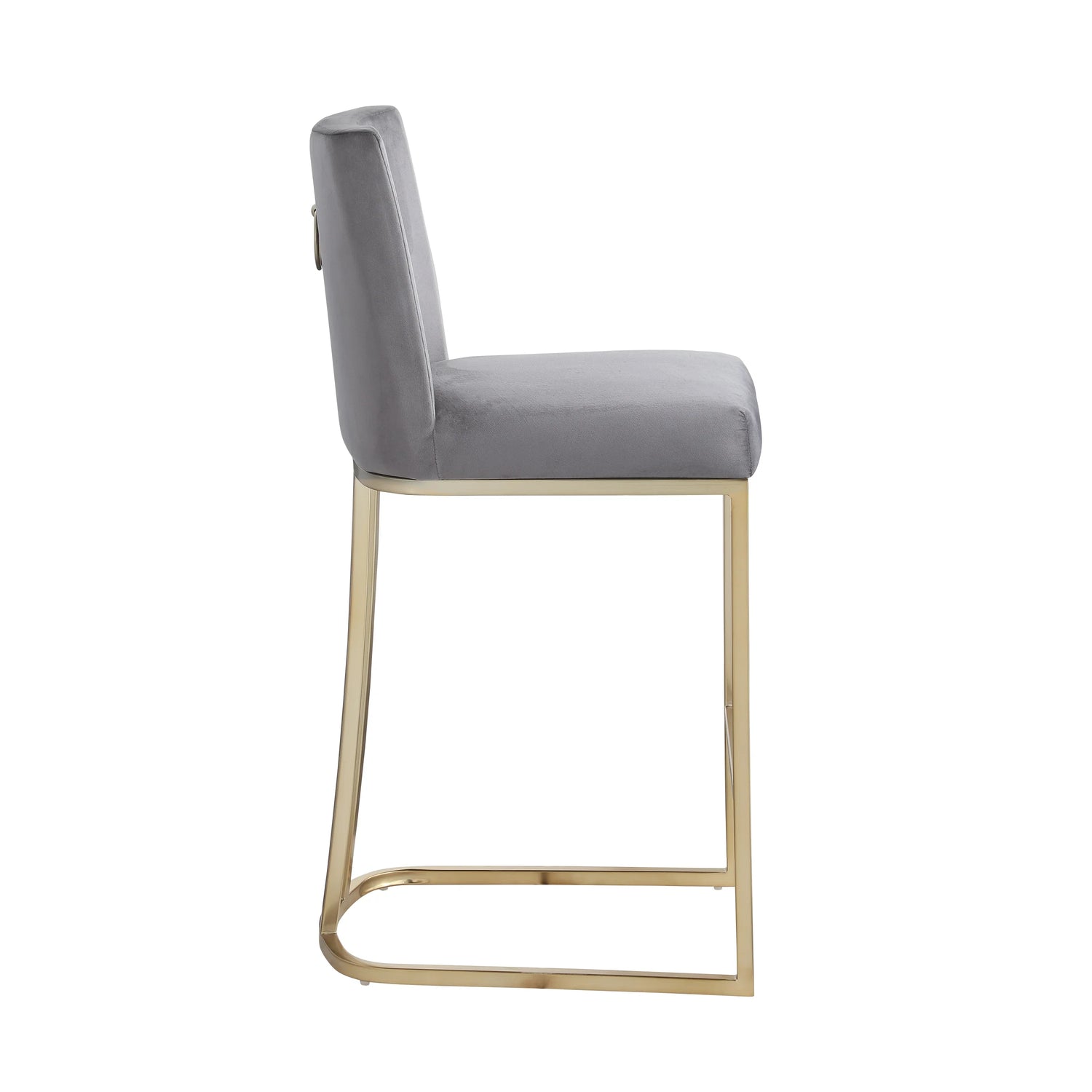 This counter-height stool with a velvet-upholstered seat and gold-finish metal frame is built for anyone who wants a polished, modern look at the kitchen island or breakfast bar. The compact footprint and cushioned back make it a comfortable choice for everyday morning coffees, casual dinners, or working from your counter. It reads contemporary-glam—soft gray velvet paired with a warm gold frame—for homes that balance luxe detail with practical seating.