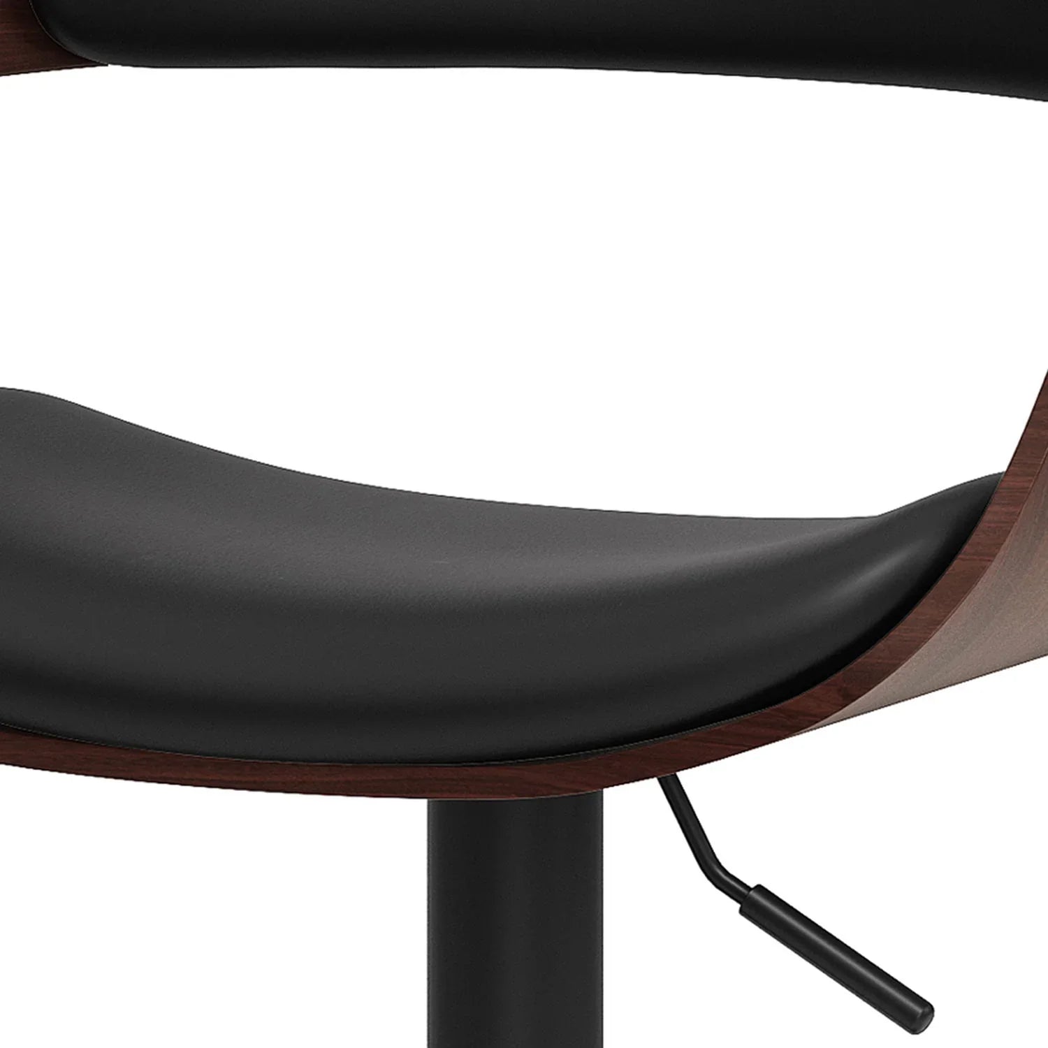 Hand-constructed from kiln‑dried bentwood plywood with a walnut veneer and upholstered in durable black vegan faux leather, Archer blends warm wood grain with a matte black metal base for a contemporary look that wears well day-to-day. The 360° swivel and height-adjustable mechanism make it easy to shift from cooking to socializing without standing — practical for busy households and small spaces.