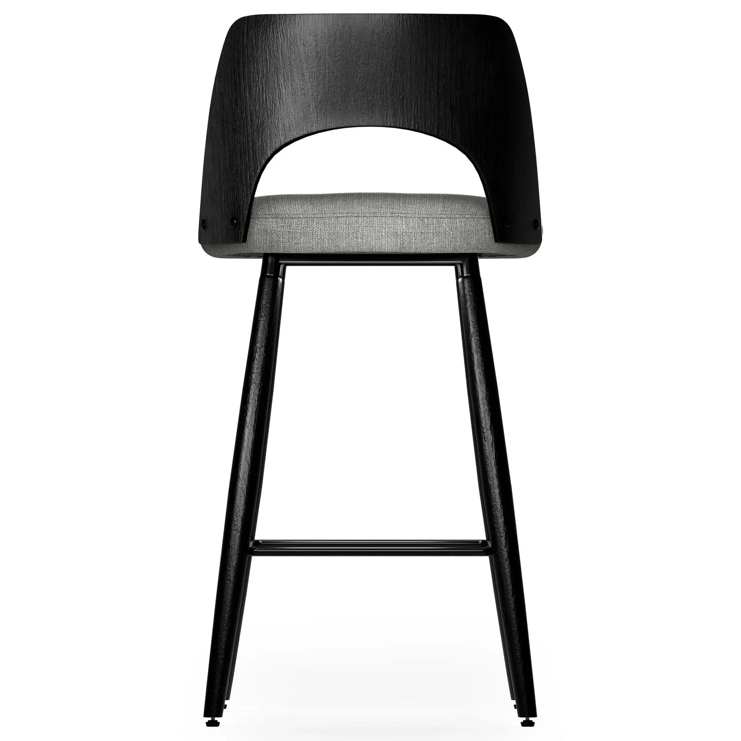 Hand-constructed with a combination of wood, metal, foam and polyester batting, Callie blends a sculpted black brushed-wood back with a cushioned, upholstered seat and a sturdy metal footrest. The overall silhouette reads contemporary and minimal—a refined countertop seating solution that reads as both design-forward and practical for daily use.