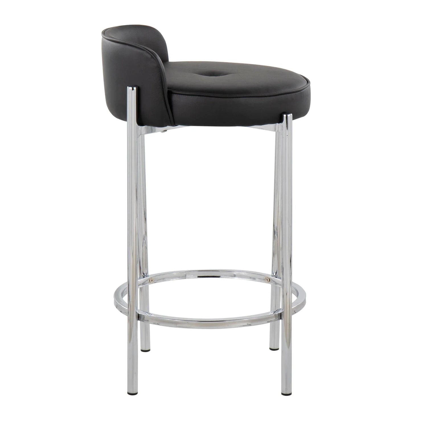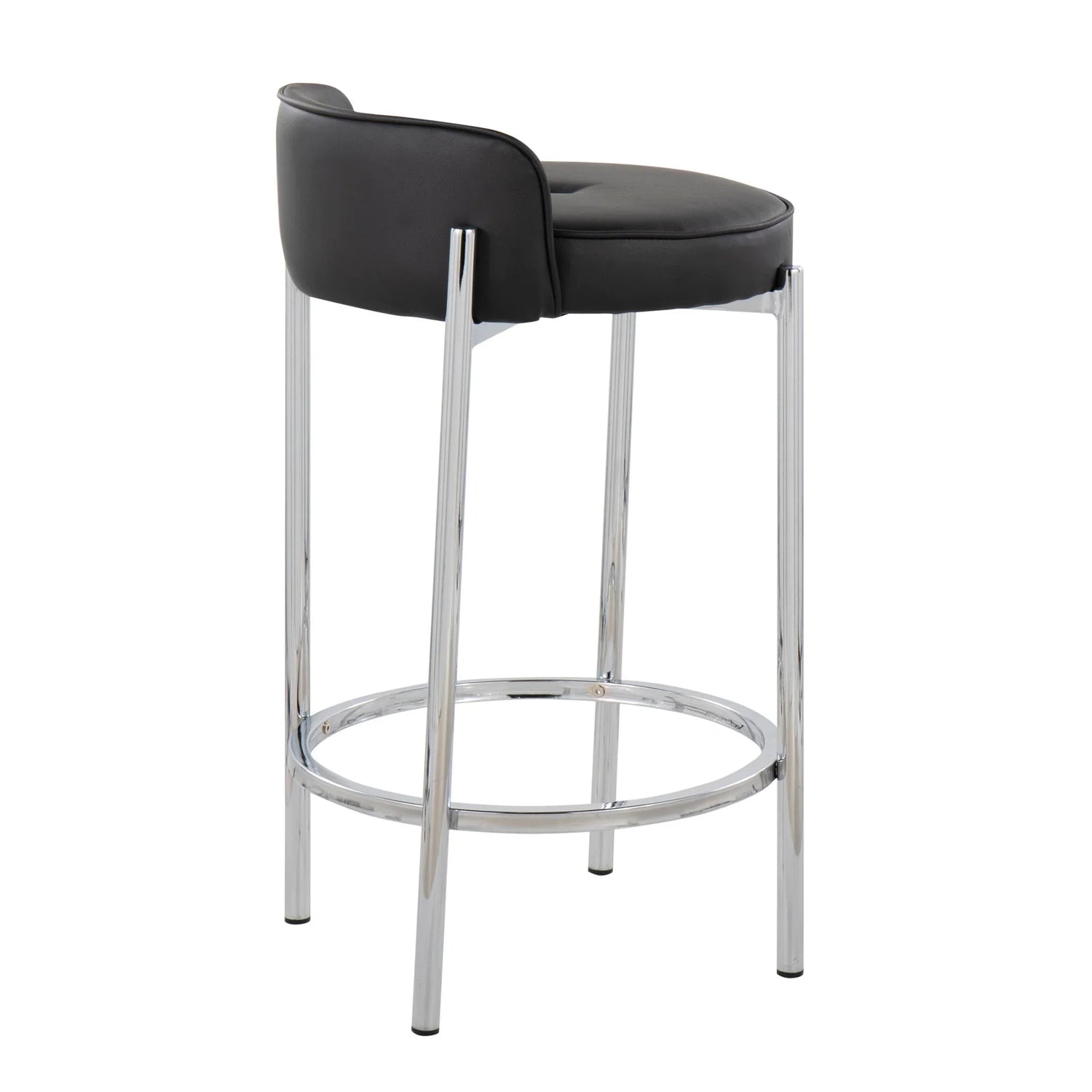 Designed for everyday use, these stools balance style and comfort with a padded upholstered seat, subtle tufting, and a slim metal frame that keeps sightlines open. Finished and engineered for modern interiors, Chloe pairs seamlessly with mid-century, modern-contemporary, or glam decor. Sold as a coordinated two-piece set, it’s a simple way to add sparkle and soft texture to your bar or counter area.