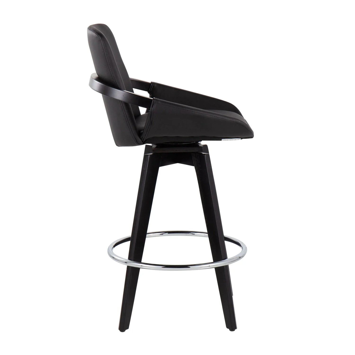 • Functional Features: Designed with a fixed counter height, the stool includes a 360-degree swivel function, stylish faux leather upholstery, and sturdy wood legs with a round chrome footrest.
