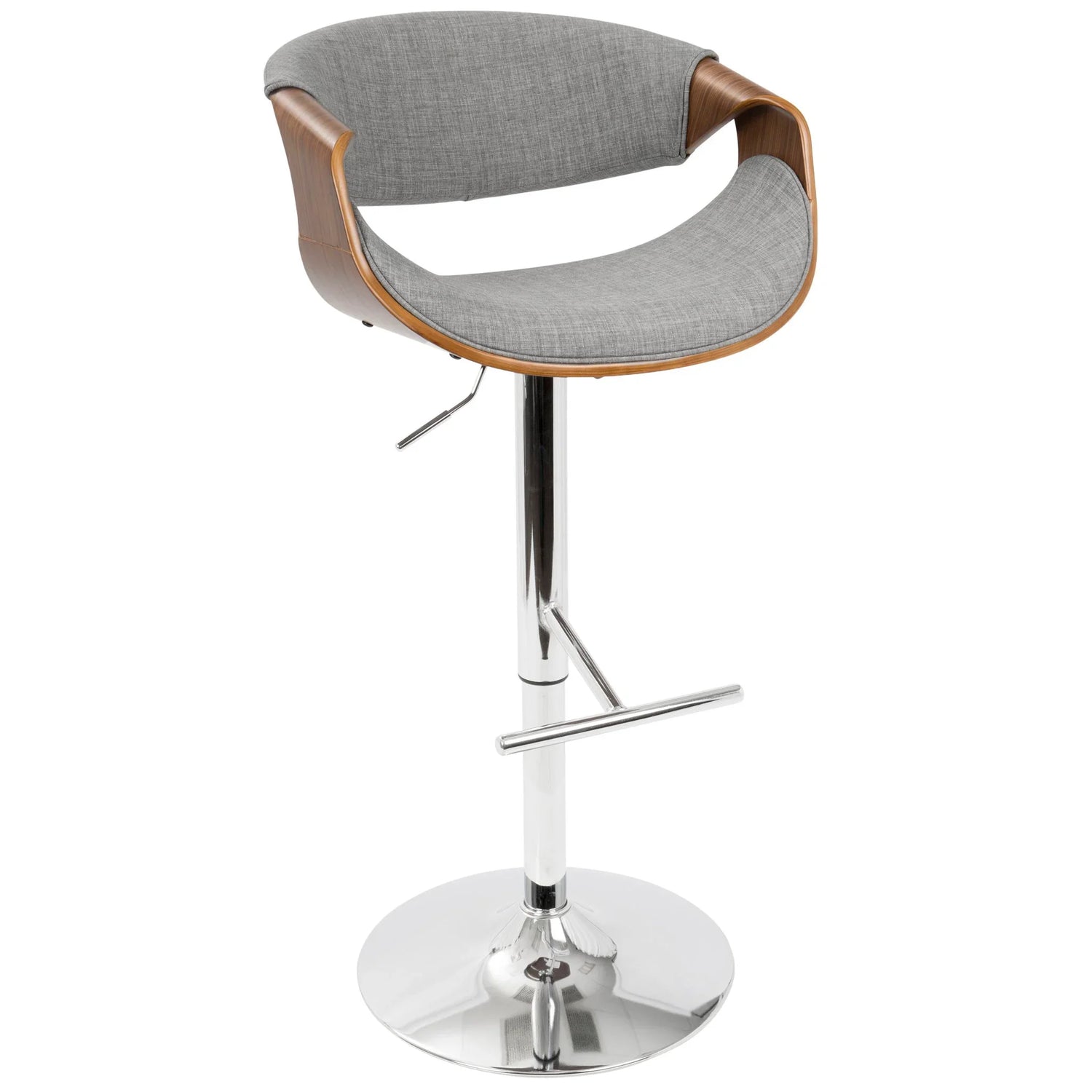 Curvo - Mid-Century Modern Adjustable Barstool With Swivel With Straight T Footrest (Set of 2) - Chrome / Walnut / Charcoal