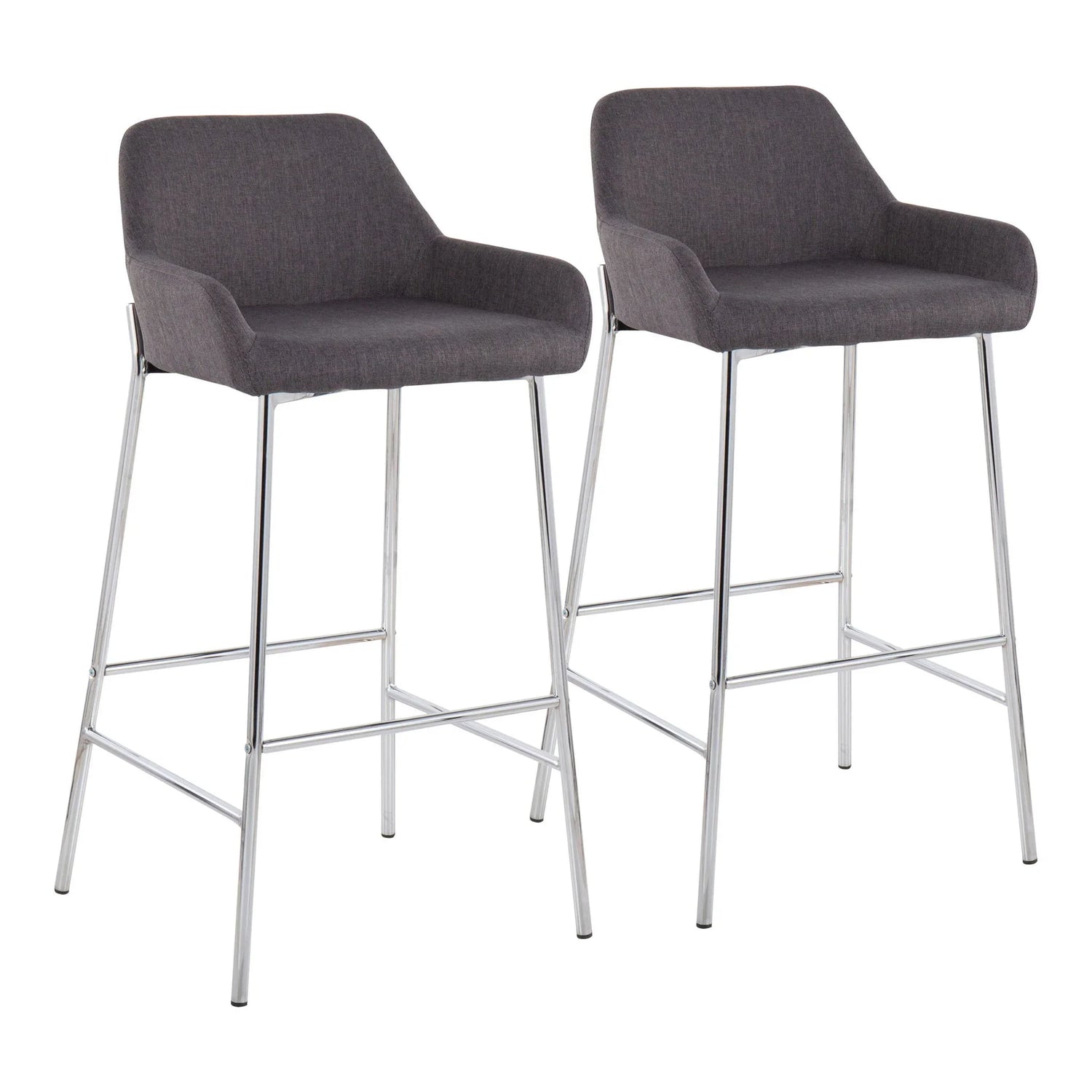 Daniella - Contemporary Fixed Height Bar Stool (Set of 2) - Chrome / Charcoal