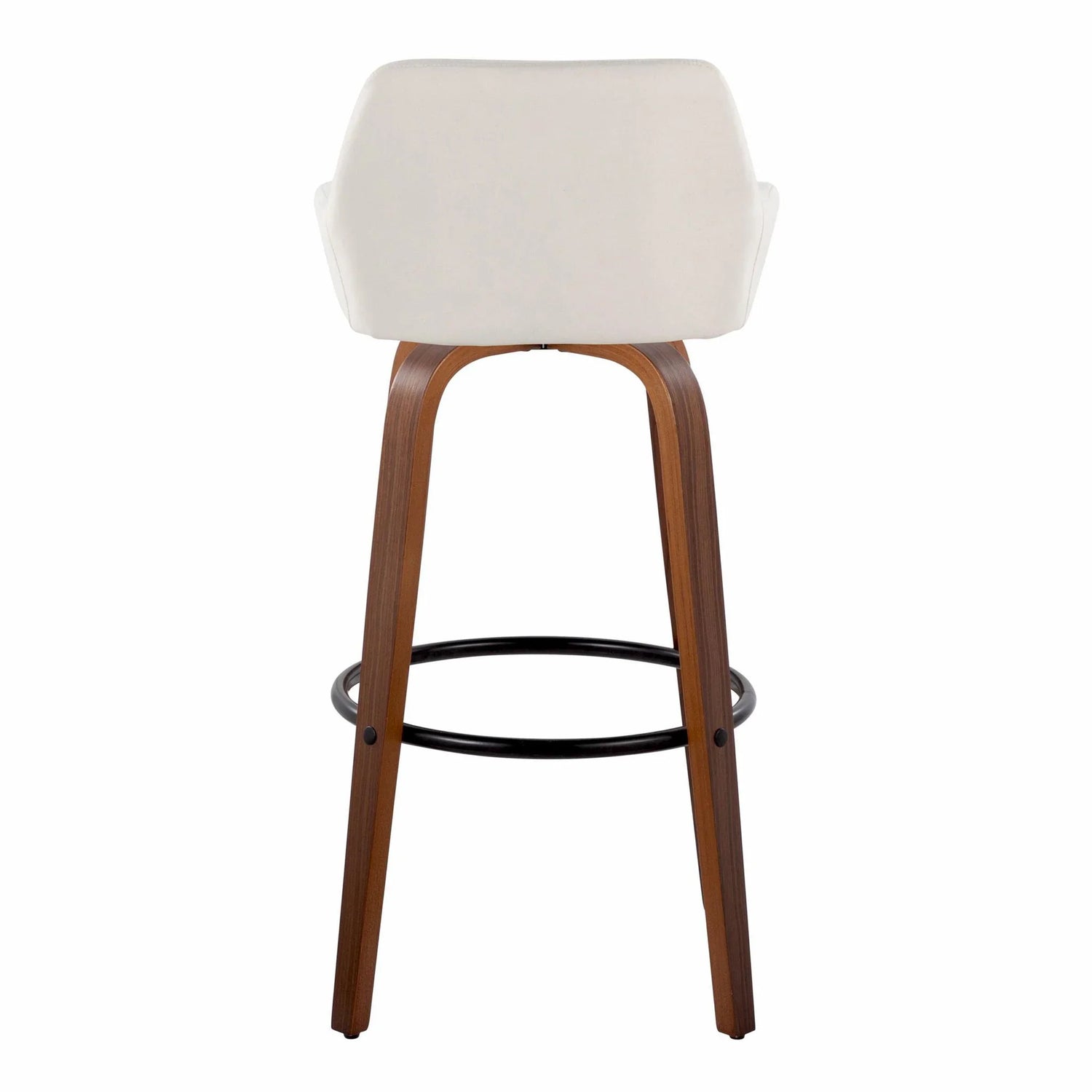 Daniella - Contemporary Fixed Height Barstool With Swivel And Round Footrest (Set of 2) - Walnut / Cream