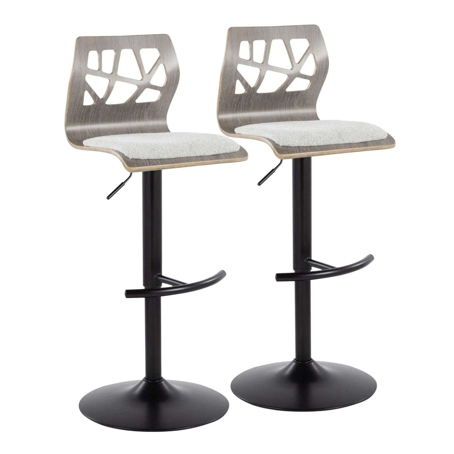 The Folia adjustable barstool (set of 2) is for anyone who wants modern, sculptural seating at a kitchen island, home bar, or casual dining counter. Its bent plywood seat with geometric cut‑out back and lightly padded upholstered cushion balances visual lightness with everyday comfort—ideal for small open kitchens, contemporary dining nooks, and multipurpose social spaces.