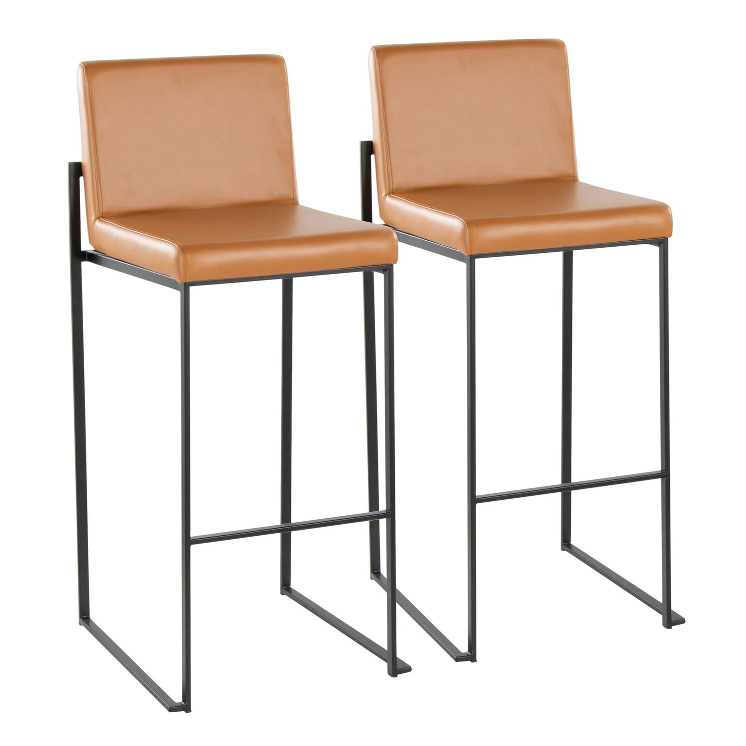 Fuji - Contemporary High Back Barstool (Set of 2) - Camel / Black