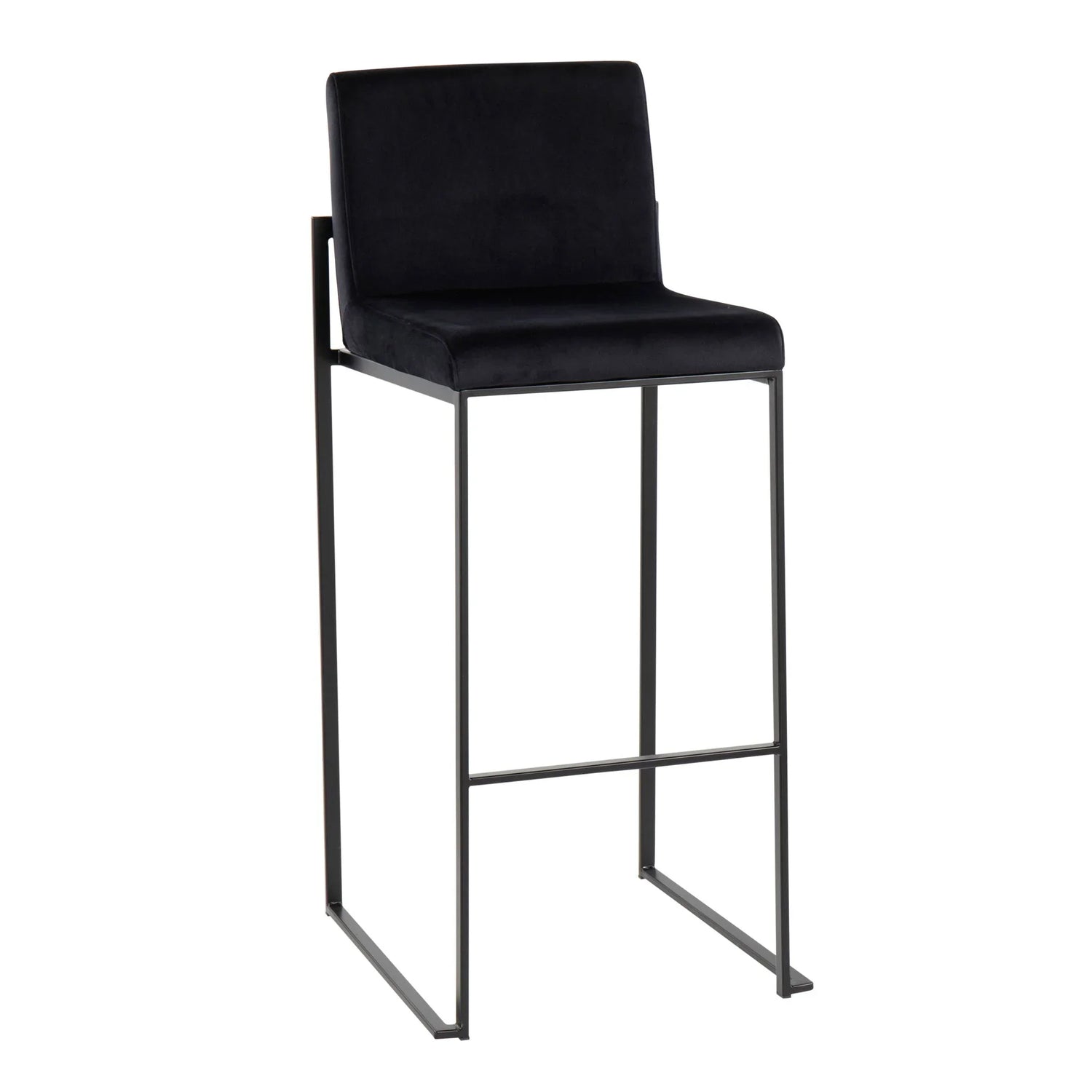 Fuji - Contemporary High Back Barstool (Set of 3) - Black - Velvet