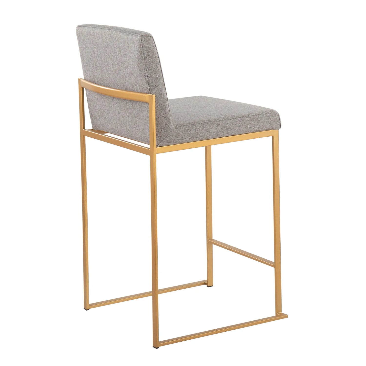 Fuji - Contemporary High Back Counter Stool (Set of 2) - Gold / Gray