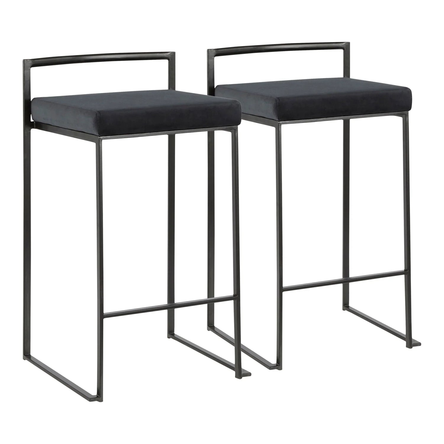 Fuji - Contemporary Stackable Counter Stool (Set of 2) - Black - Velvet