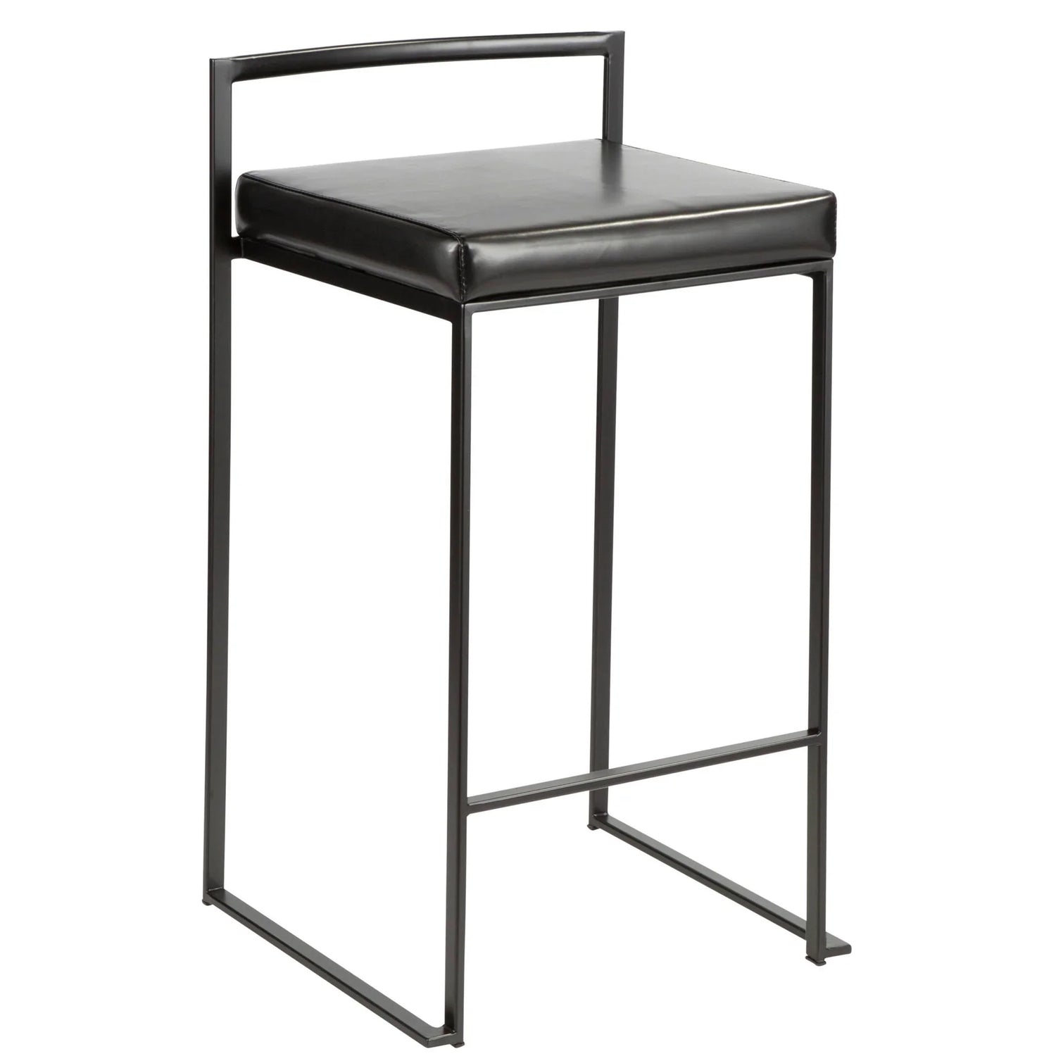 Fuji - Contemporary Stackable Counter Stool (Set of 3) - Black - Faux Leather