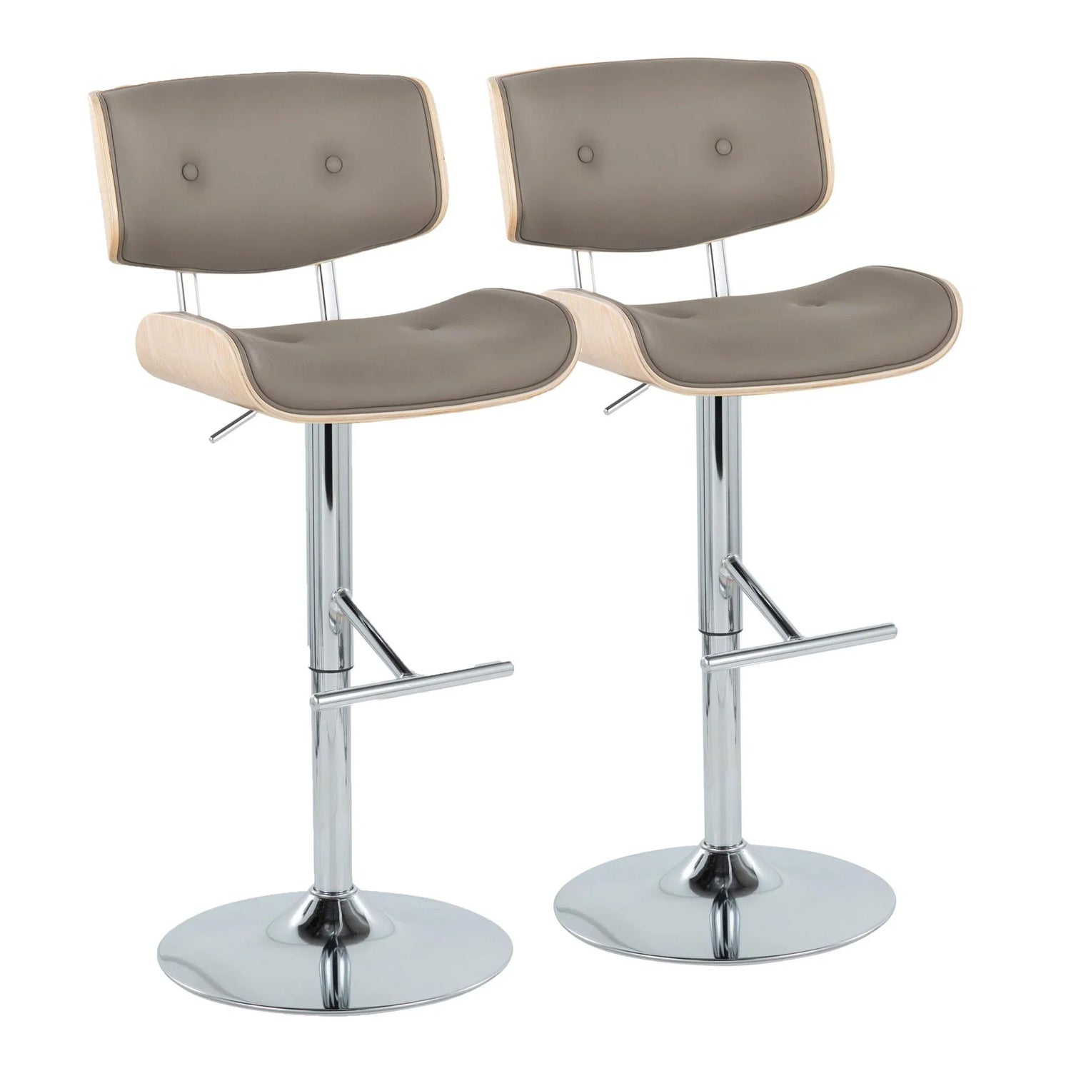 Lombardi - Contemporary Adjustable Barstool With Swivel With Straight T Footrest (Set of 2) - Chrome / Natural / Light Gray