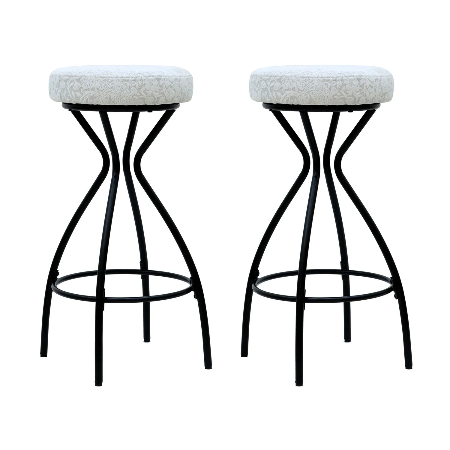 Modern Floral Print Counter Height Bar Stool (Set of 2) With Footrest - Black / White