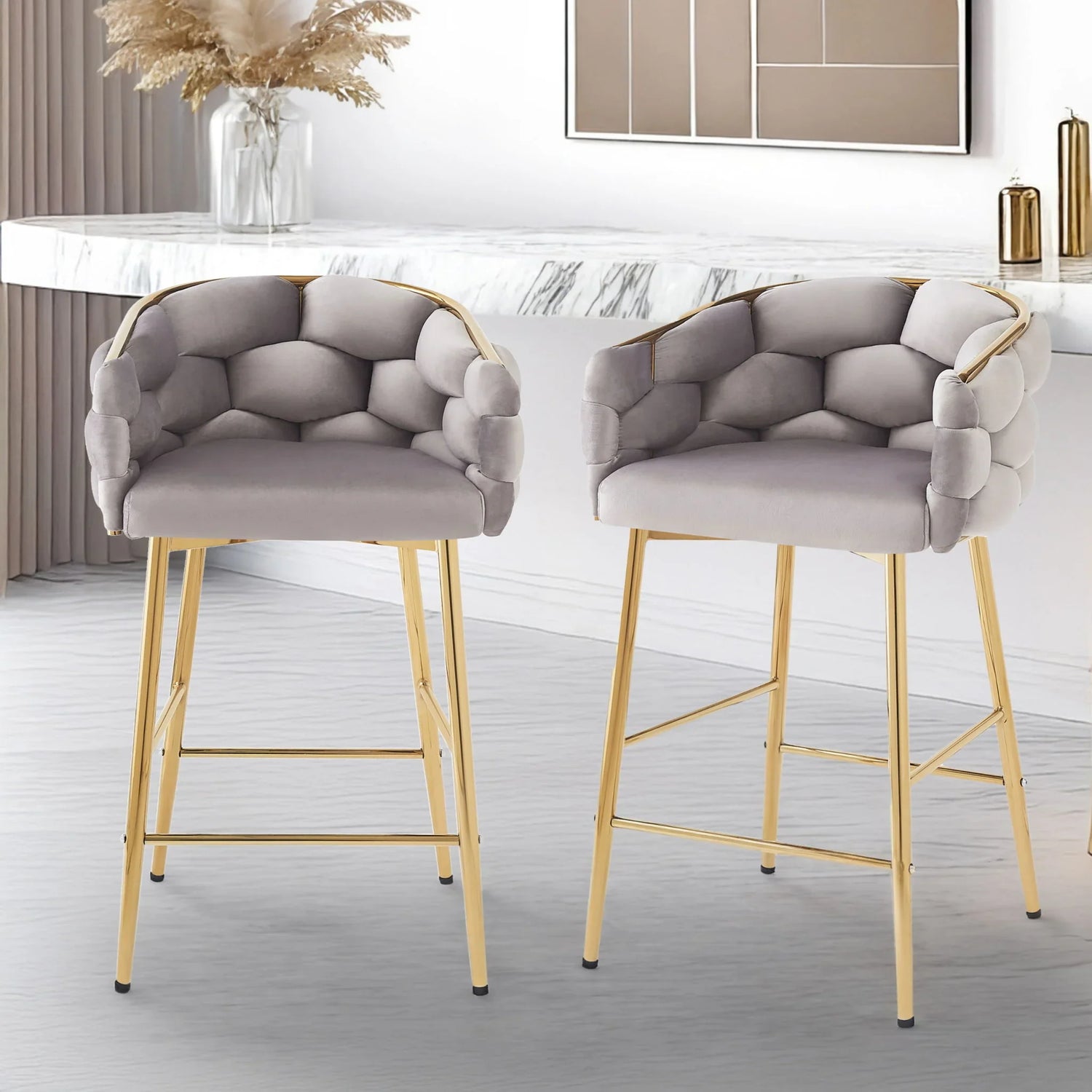 Modern Counter Stools (Set of 2) Counter Stools, Soft Back And Cushion, Footrest, Suitable For Kitchen - Gray