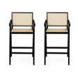Modern Minimalist Bar Stool With Cane Seat - Black / Natural