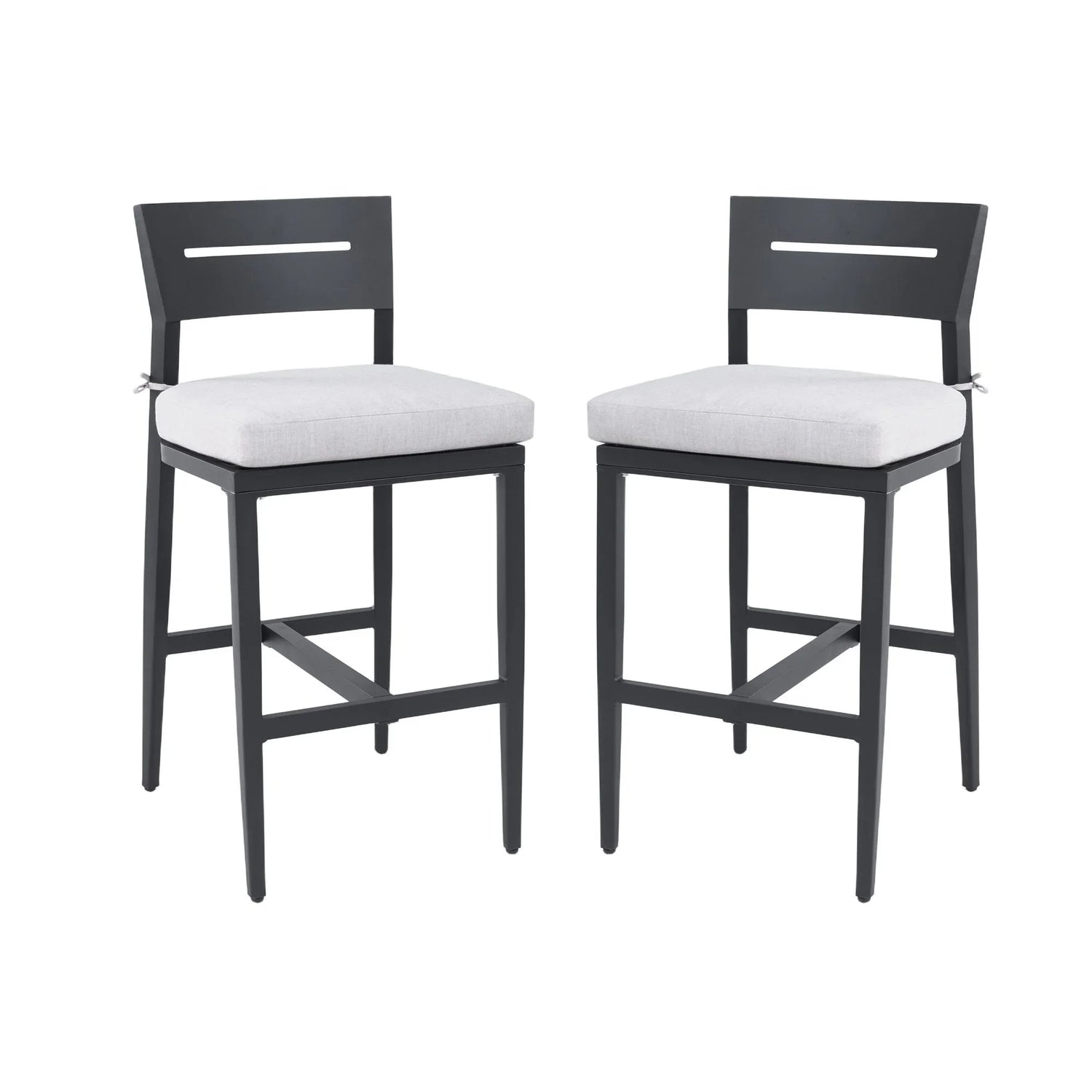 Modern Outdoor Bar Stools, Patio Chairs With Backrest And Footrest, Weather Resistant, Sunbrella Cushions (Set of 2) - Ember Black