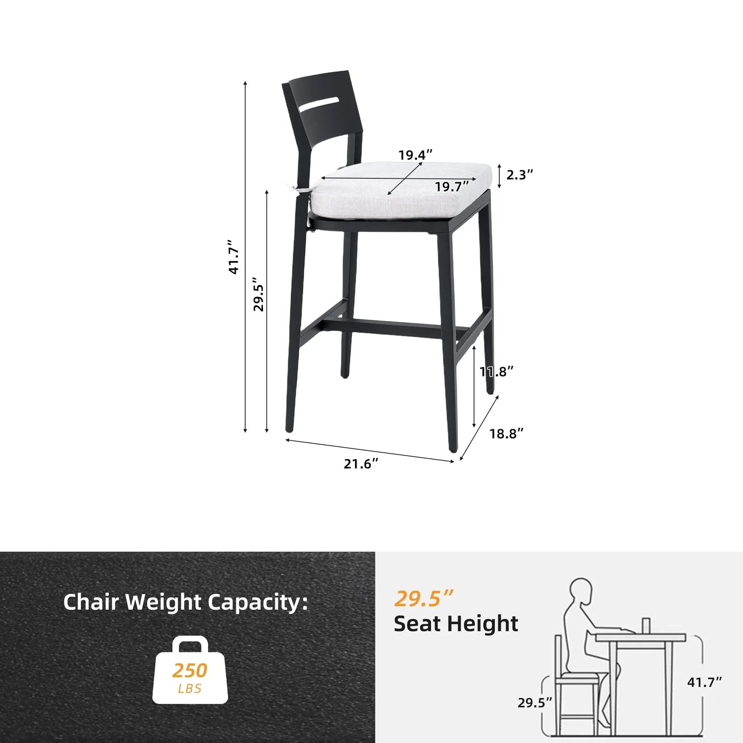 Modern Outdoor Bar Stools With Backrest And Footrest (Set of 2)